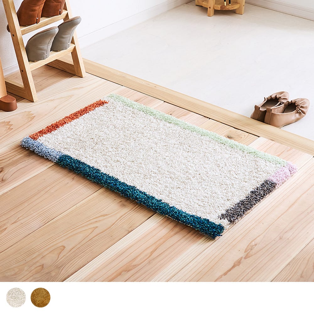 アクセントを効かせた縁のカラーが目を惹く、ピクチャーフレームをイメージした玄関マット。シンプルながらも抜け感のあるおしゃれなデザインです。