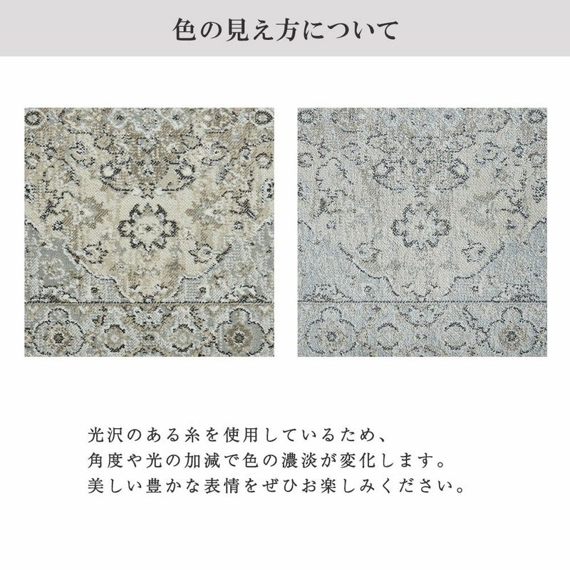 時を重ねたヴィンテージのような味わい深い風合いと、美しいメダリオン模様が魅力の一枚。その優しく上品なデザインはインテリアに溶け込み、お部屋を華やかに、そして深みのある空間へと昇華させます。光沢が加わることで、より一層高級感を漂わせる仕上がりです。