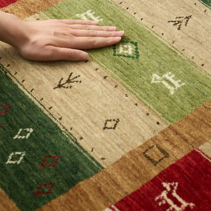 元々遊牧民のテントの中に敷かれ、土足で使用されてきた伝統の敷物である「ギャッベ」は、その丈夫さから100年以上長持ちするとも言われてきました。ウール80%・コットン20%の割合でざっくりと仕上げた、ギャッベならではの贅沢な厚みと独特な弾力にきっとあなたもやみつきに!