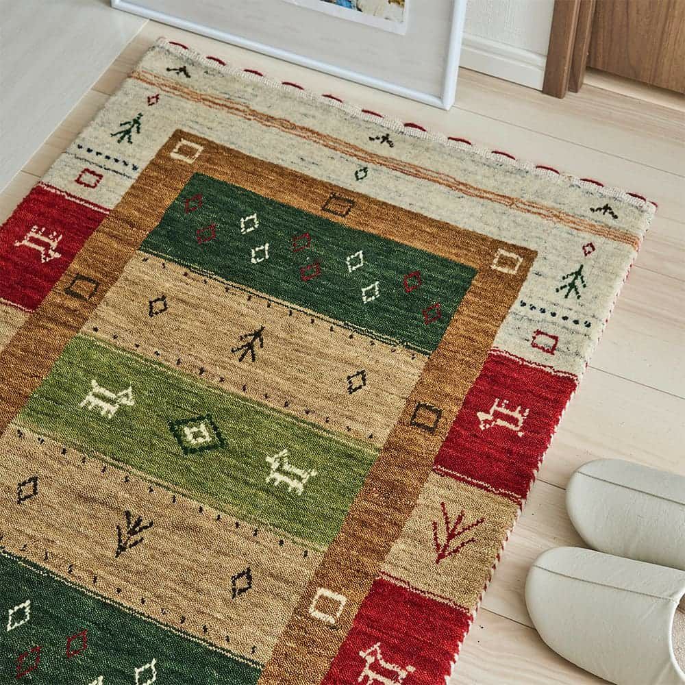ギャッベのマットはお手入れが大変なのでは?と思われる方も多いですが、ギュッと目が詰まっているのでゴミやほこりが入りにくく、実はお手入れが簡単◎また、厚手で弾力があるので、踏み心地が良いのはもちろんのこと、床の傷や凹みからも保護してくれます。