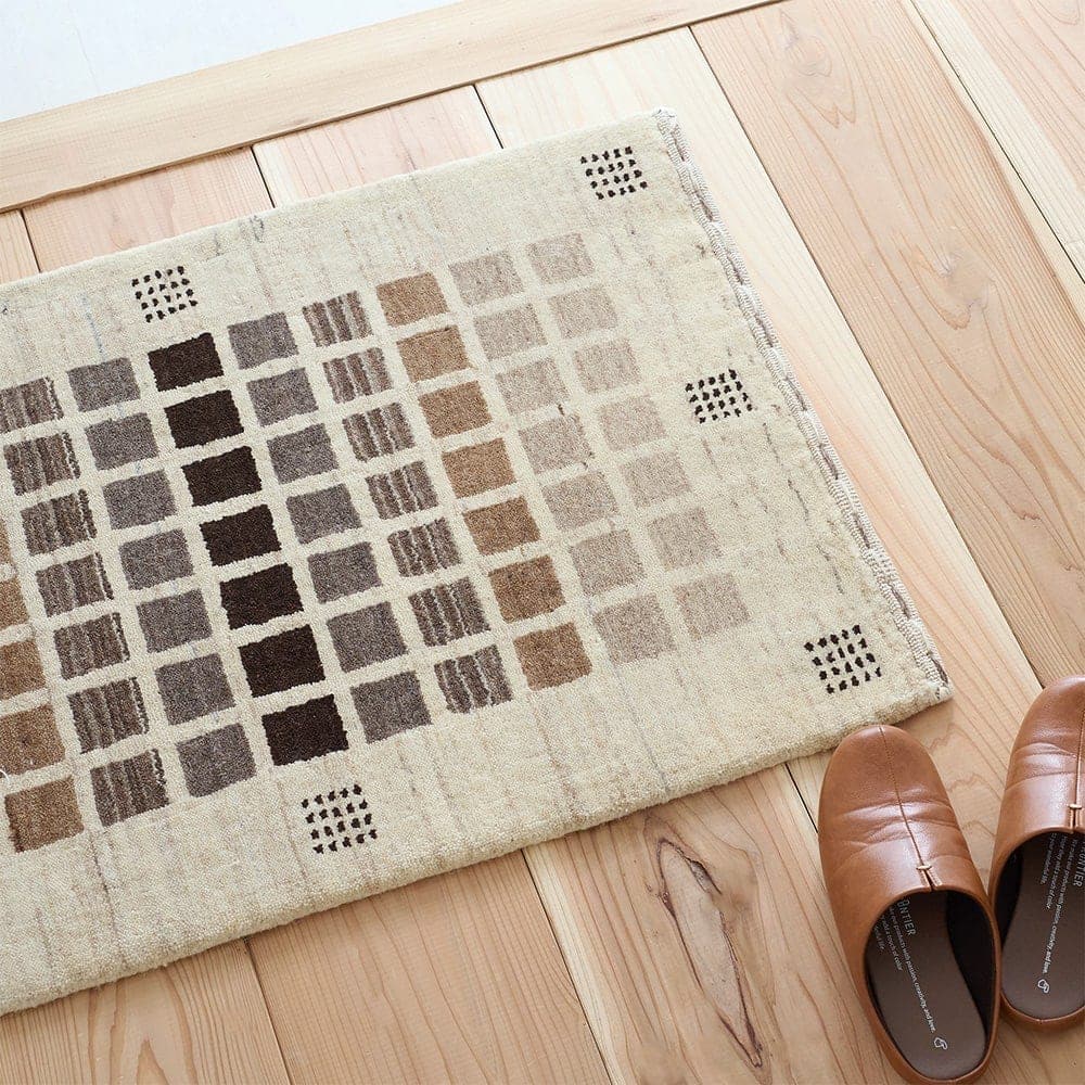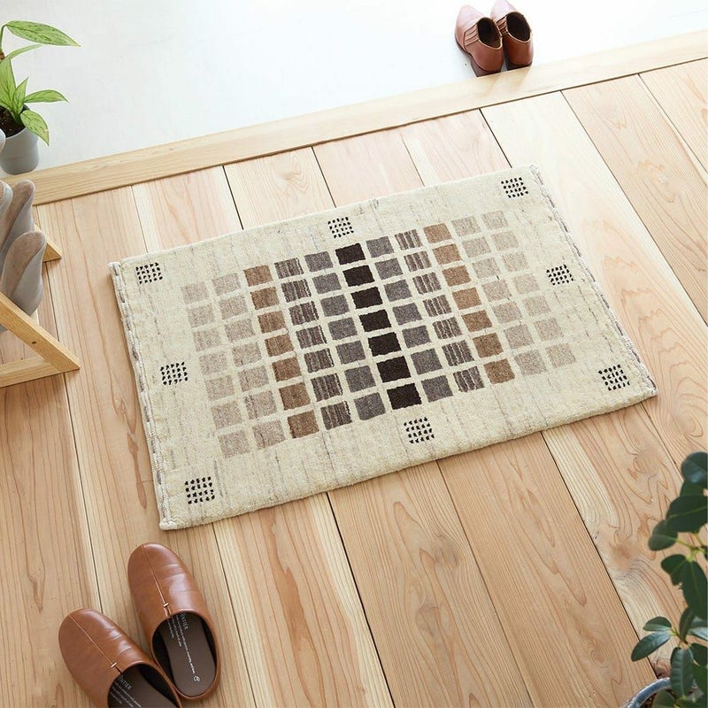 ウールならではの淡い色合いがナチュラル系のインテリアと相性抜群の玄関マット。手触りも柔らかく滑らかで、ほっこりと落ち着ける空間を演出してくれる一枚です。