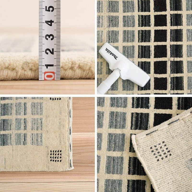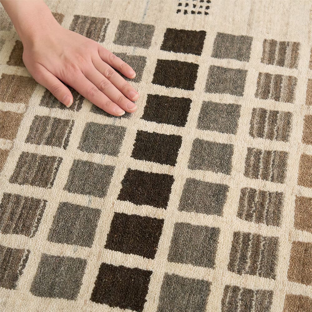 吸湿性のある天然素材のウールで織られているので、湿度の高いジメジメとした夏でもさらりと快適な肌ざわり。また、冬のフローリングの冷たさも防いでくれるので、オールシーズンご愛用いただけます。