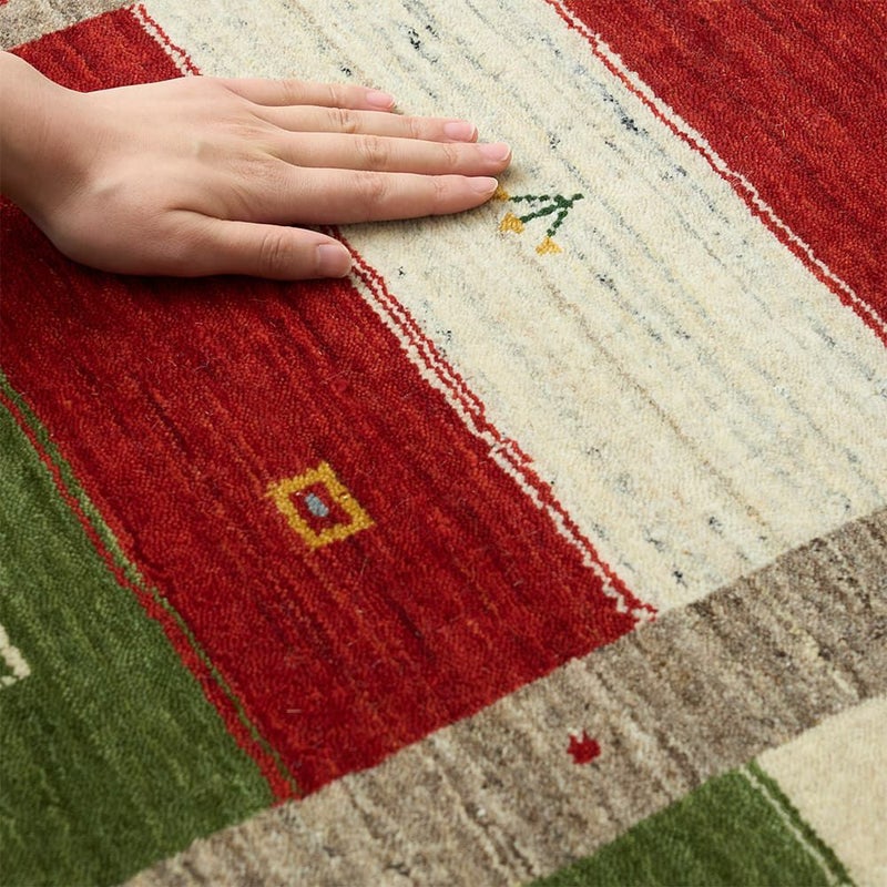 元々遊牧民のテントの中に敷かれ、土足で使用されてきた伝統の敷物である「ギャッベ」は、その丈夫さから100年以上長持ちするとも言われてきました。ウール80%・コットン20%の割合でざっくりと仕上げた、ギャッベならではの贅沢な厚みと独特な弾力にきっとあなたもやみつきに!