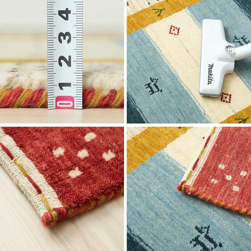 ギャッベのマットはお手入れが大変なのでは?と思われる方も多いですが、ギュッと目が詰まっているのでゴミやほこりが入りにくく、実はお手入れが簡単◎また、厚手で弾力があるので、踏み心地が良いのはもちろんのこと、床の傷や凹みからも保護してくれます。