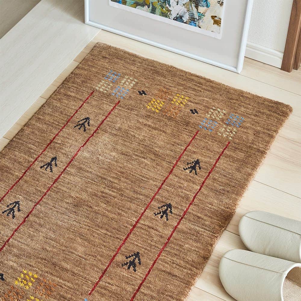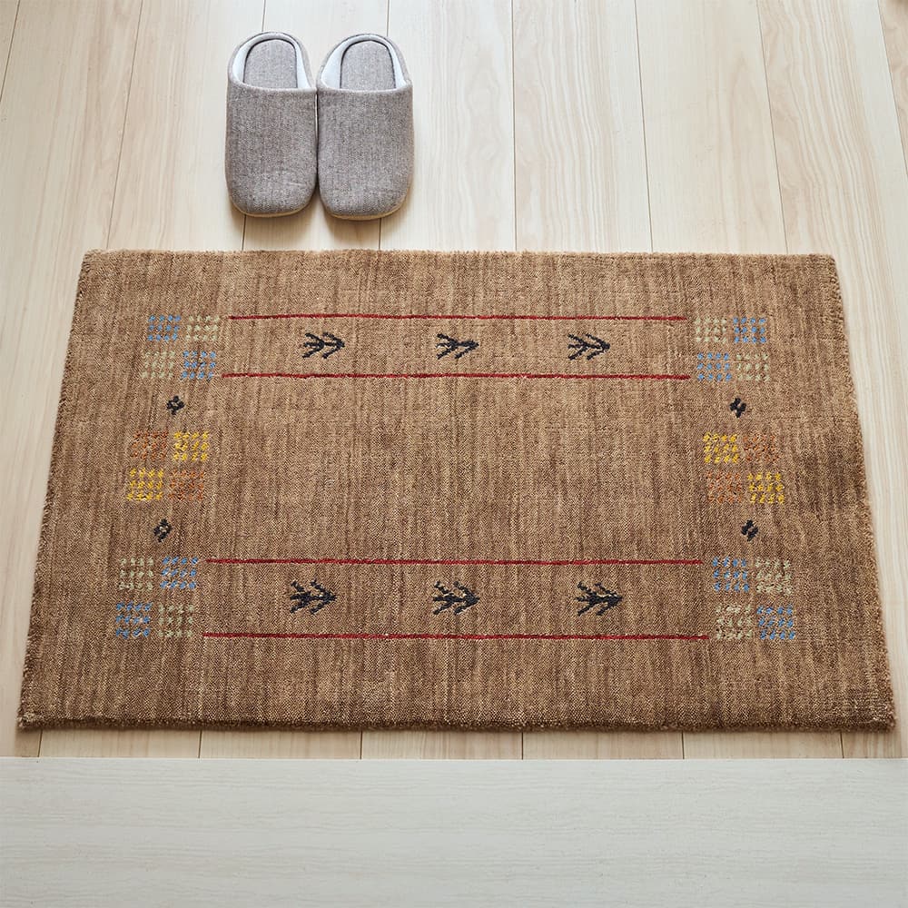 お部屋に馴染むブラウンカラーと、素朴で暖かいデザインのギャッベ柄玄関マット