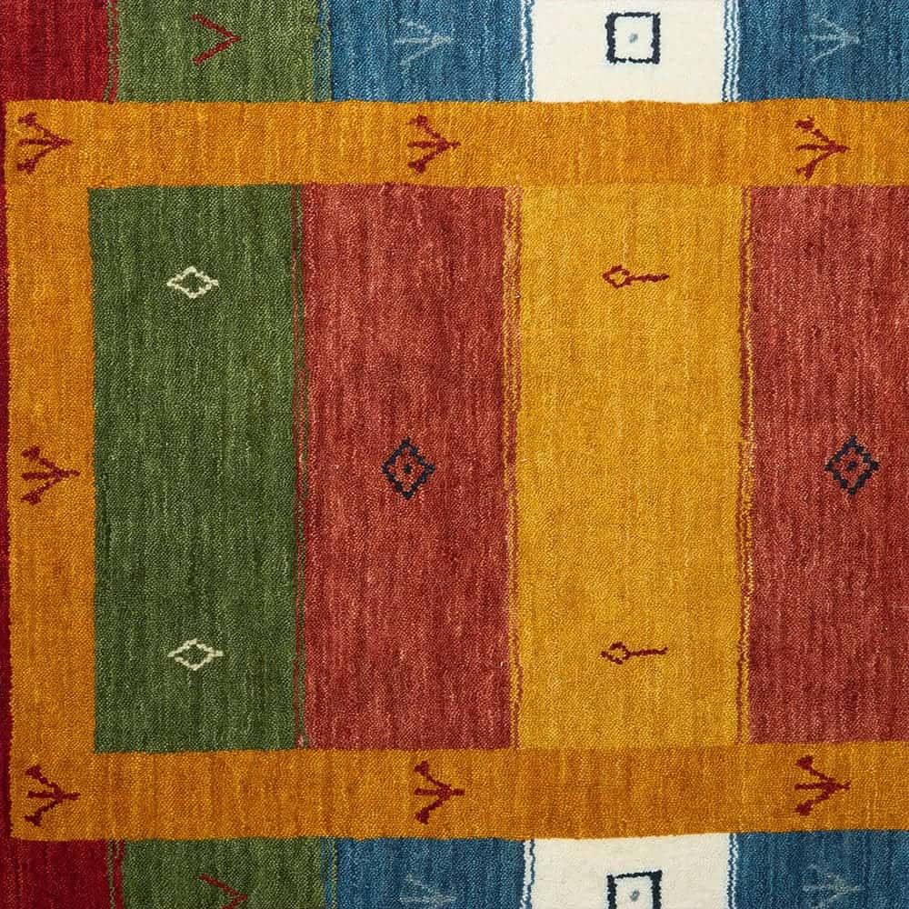モダンアートのようなカラフルな配色がオシャレなインドギャッベ