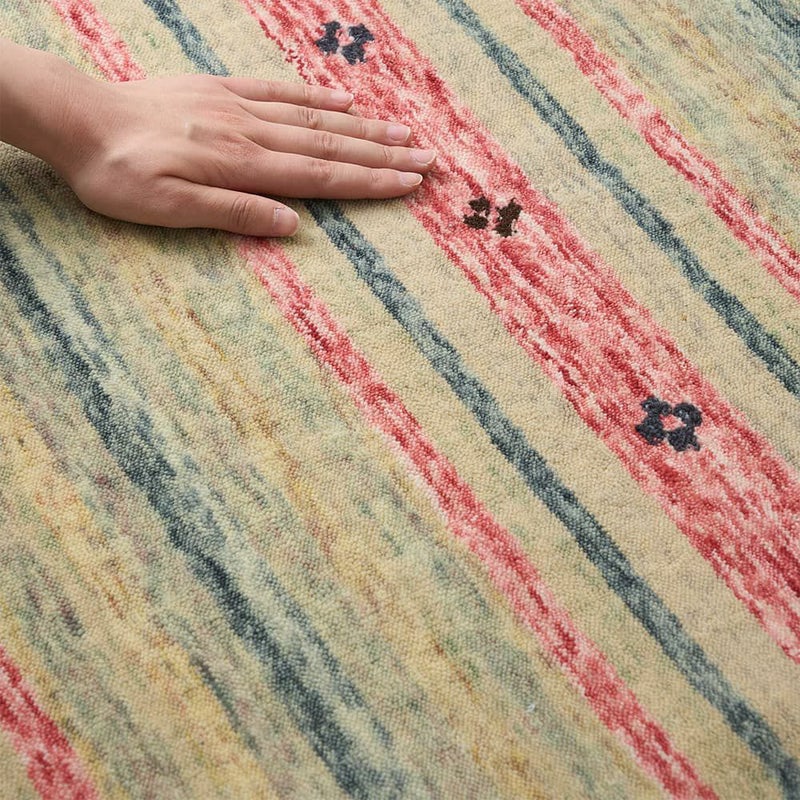 品種改良されたやわらかい羊の毛を使用することで生まれる、ソフトな肌触りがインドギャッベの魅力の一つ。思わずホッとするような柔らかな手触りをお楽しみください。