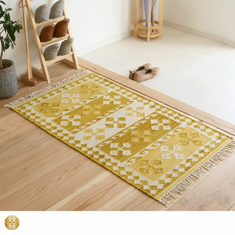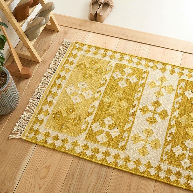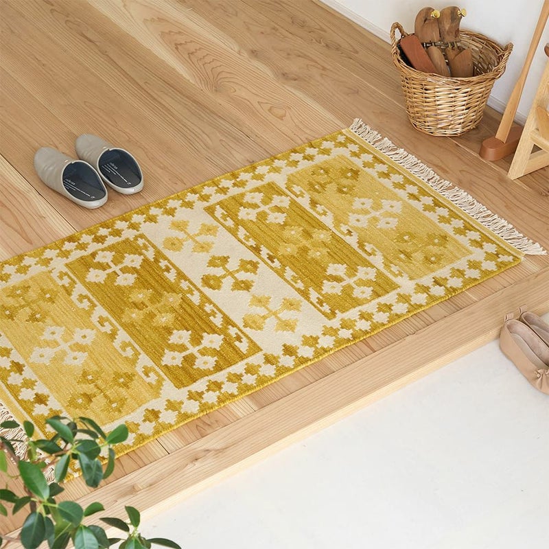 イエローカラーと煌びやかなキリム柄が美しい玄関マット