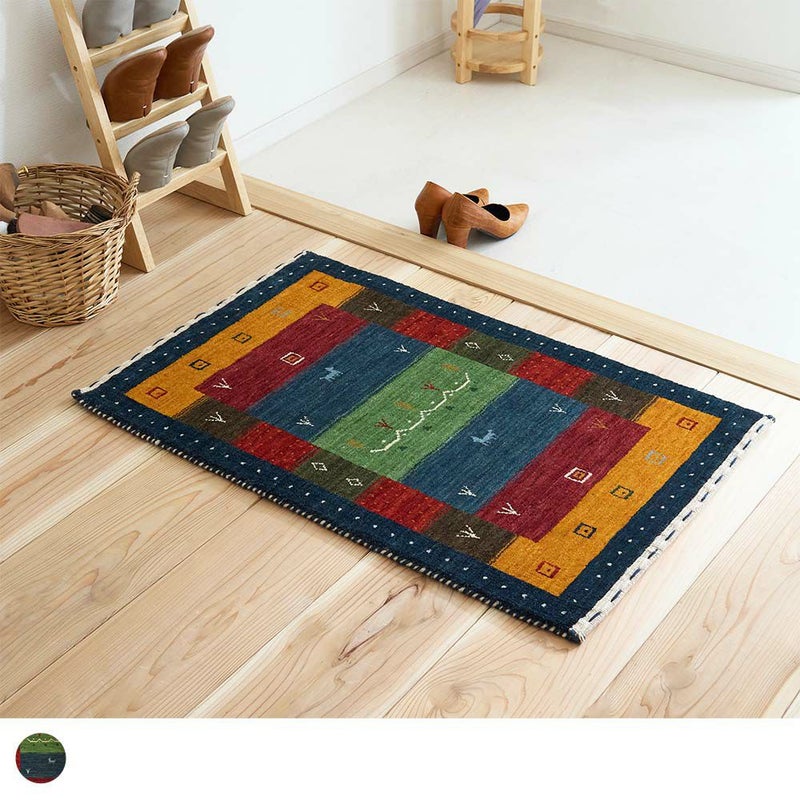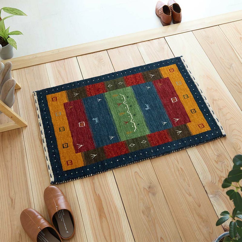ウールの手触りが心地よいインドギャッベ玄関マット