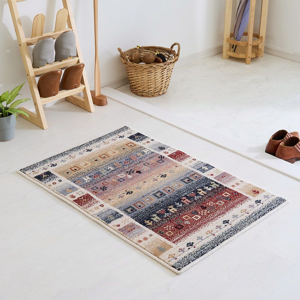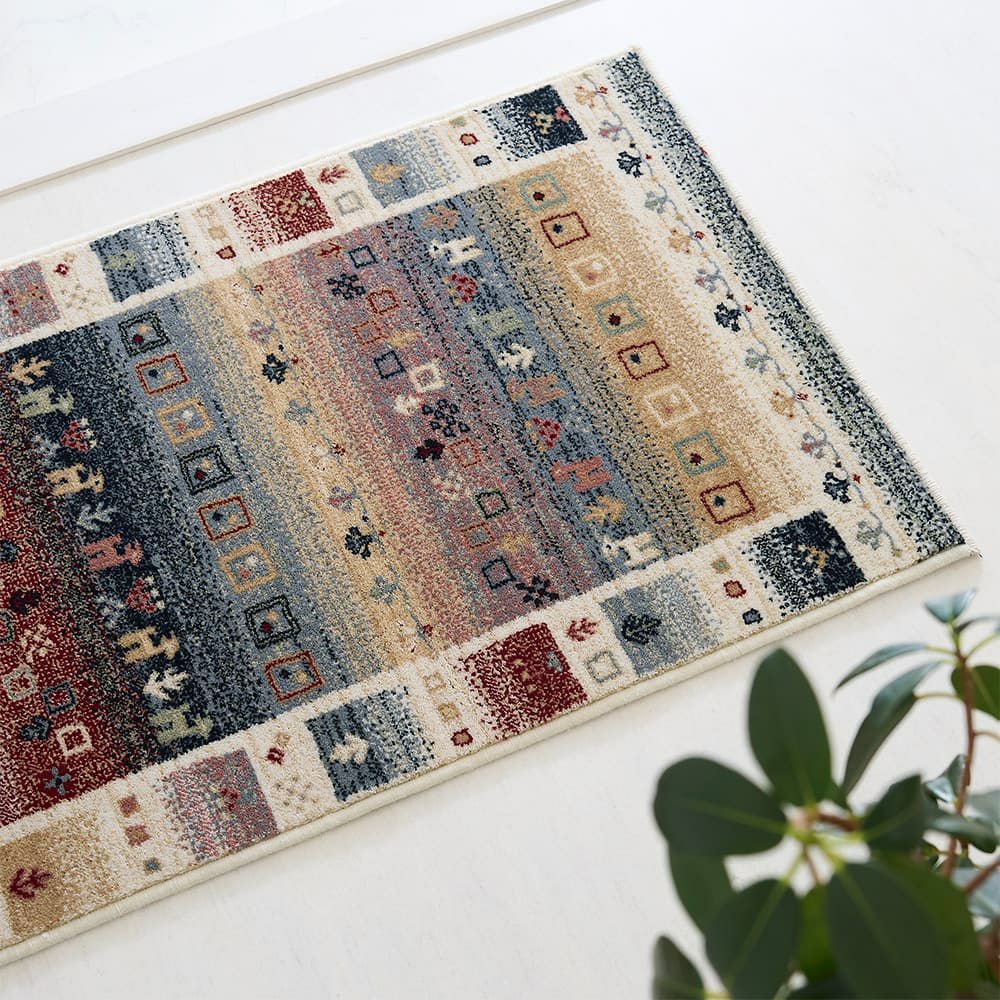 雄大な自然を表したギャッベ柄と、日が昇り沈んでいくようなグラデーションが魅力の「ゴルバーニ 玄関マット」。深呼吸した時に訪れる心の平穏を、暮らしの中にもたらしてくれそう。