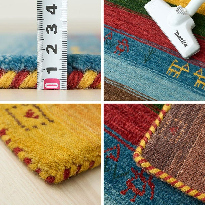 緻密な織と色使いのギャッベ柄インドラグ
