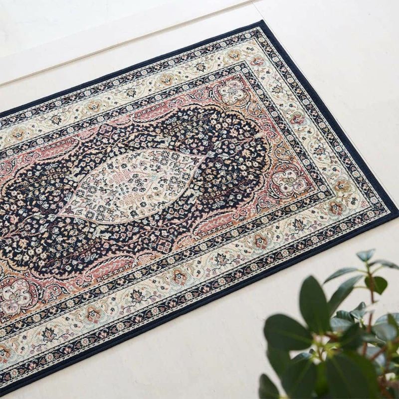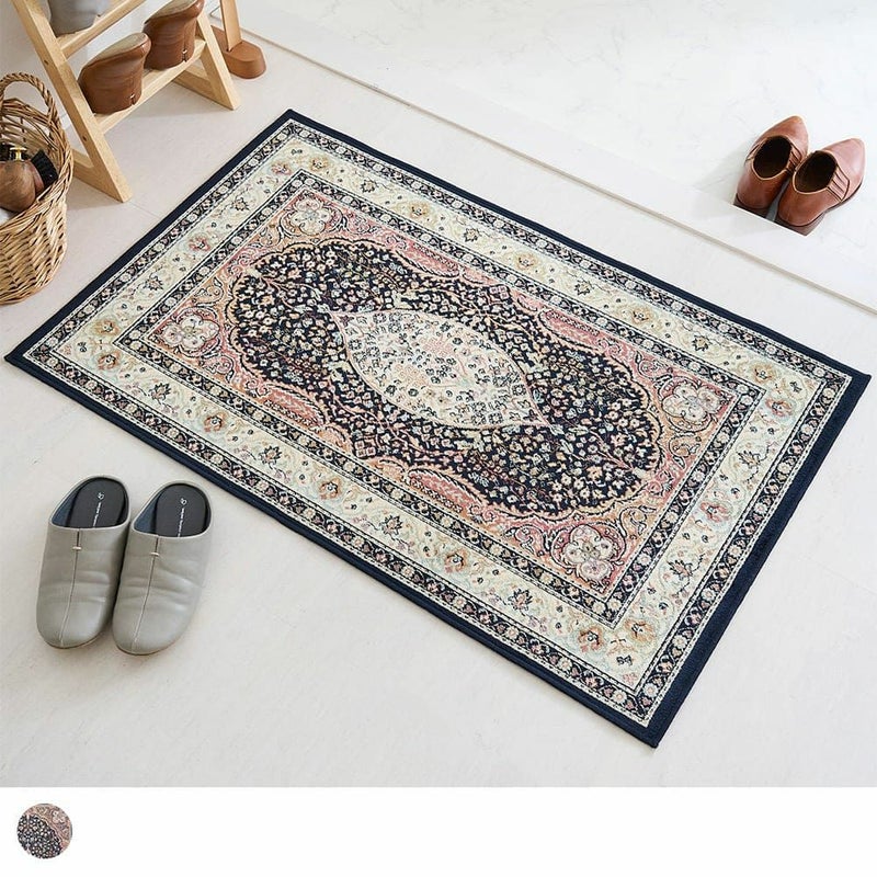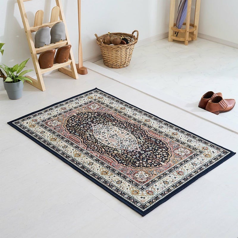 ペルシャ絨毯の伝統柄に草花をあしらった高級感のあるデザインと、落ち着いたトーンでまとめた上品なカラーリングで素敵な空間作りを叶えてくれる「ミシュダル 玄関マット」。モケット織りならではのやわらかな触り心地と美しい光沢感が魅力の一枚です。