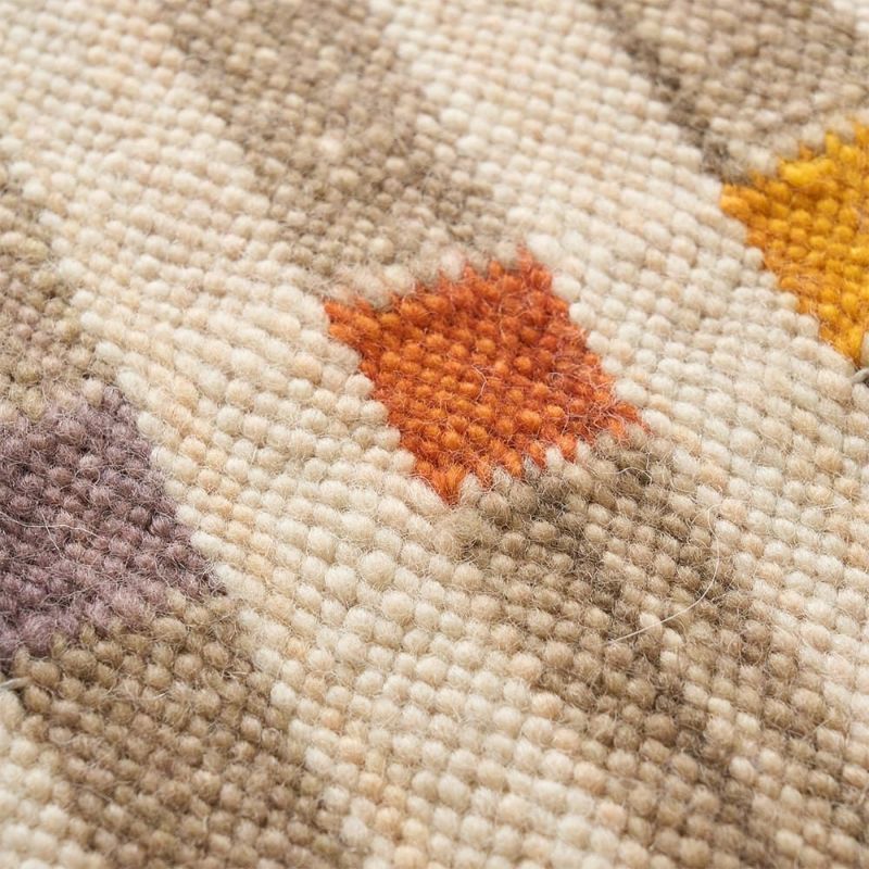 ウール素材ならではのナチュラルな風合いと、中央に配置されたカラフルなデザインの組み合わせがなんともかわいらしい玄関マット。白度の高いニュージーランドウールの特徴を活かした鮮やかな染毛が、素朴なデザインに花を添えています。