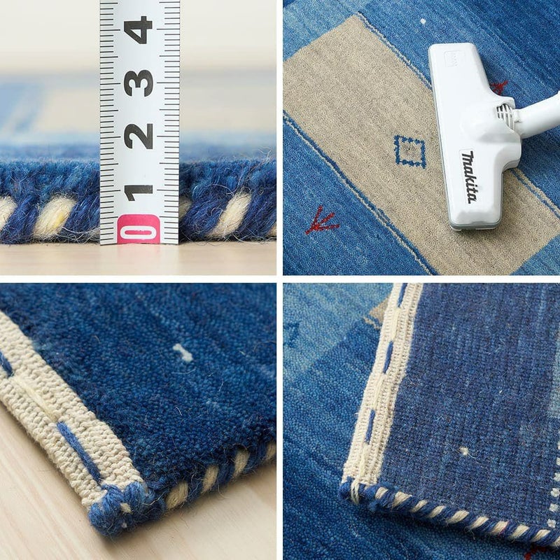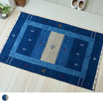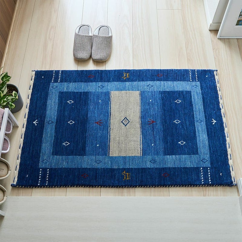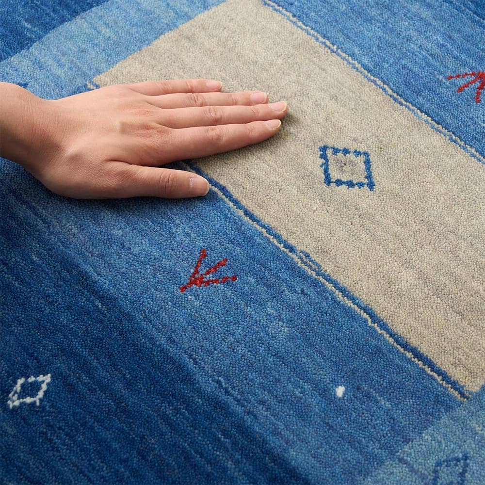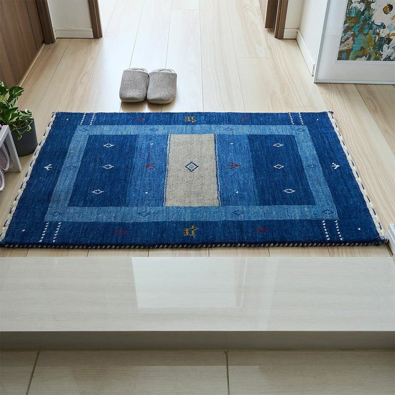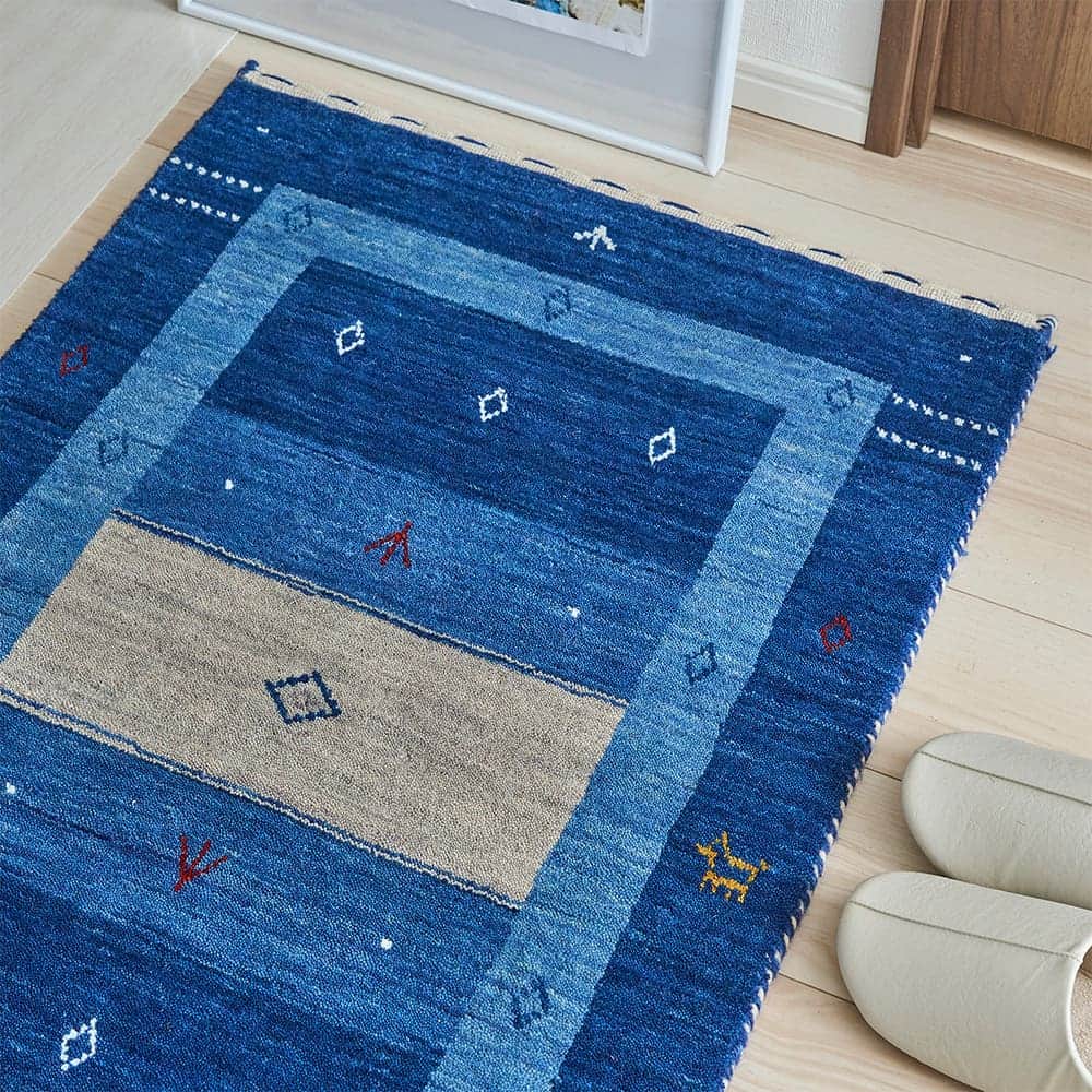 晴れた青空や、深い海の底を思わせるブルーの配色は、そばにあるだけで心に安心や落ち着きを与えてくれます。もちろん、ウールギャッベの優しい肌触りも生活に癒しを与えてくれること間違いなし。そんな「ジーラ 玄関マット」と安らぎの毎日を。