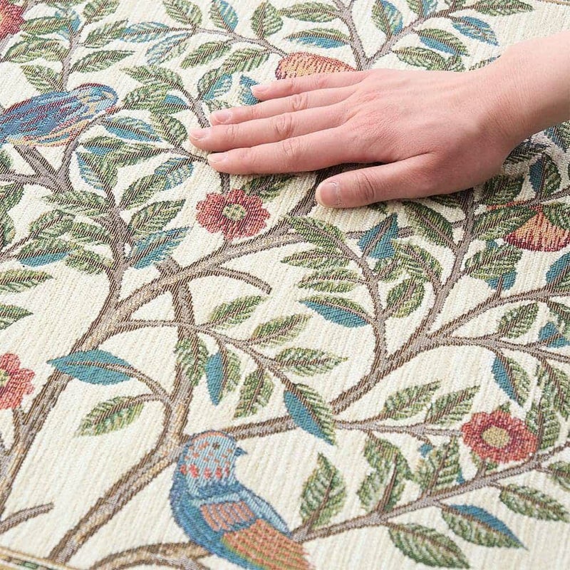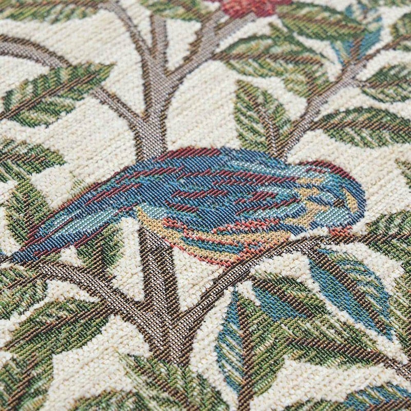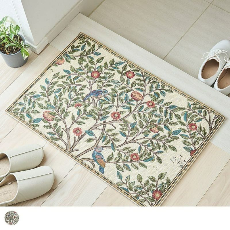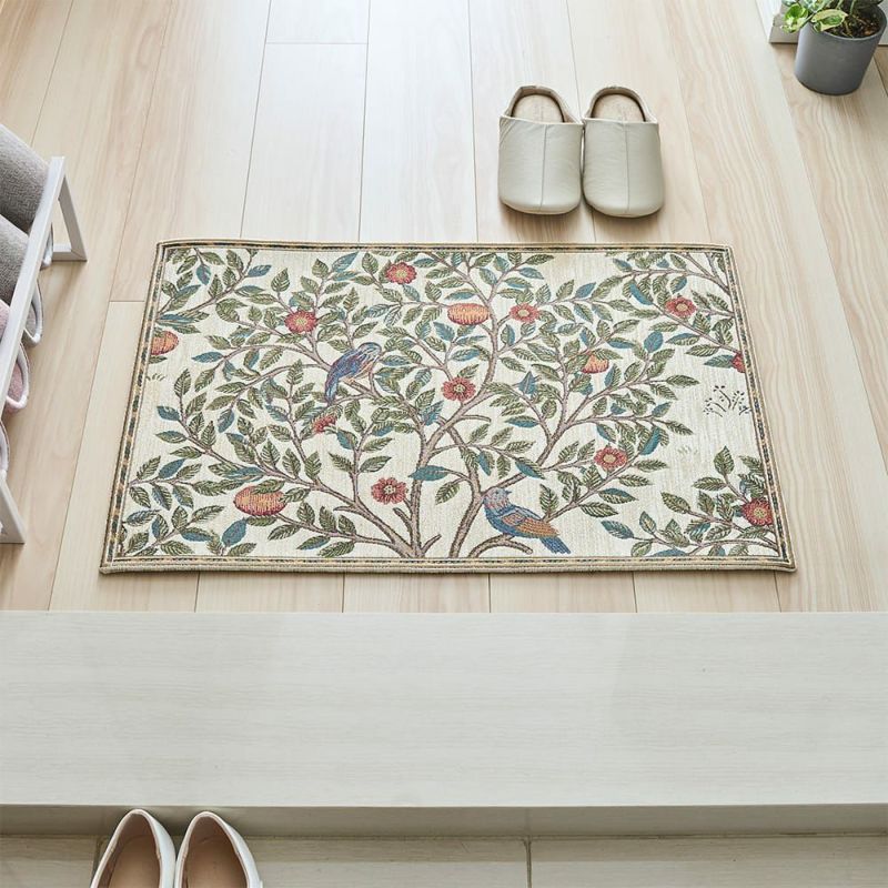 ウイリアム・モリスの住まいだった「ケルムスコット・マナー」の寝室にあるファブリックのパターンから着想を得てデザインされた「ケルムスコットツリー」を丁寧に織り上げた玄関マット。生き生きとした色彩で描かれた鳥や植物たちが、美しく生活を彩ってくれます。