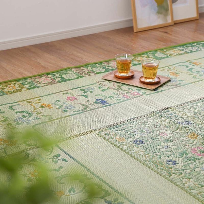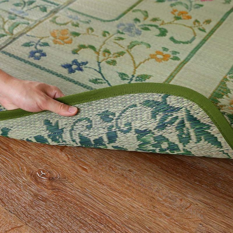 レトロな花柄のい草ラグ