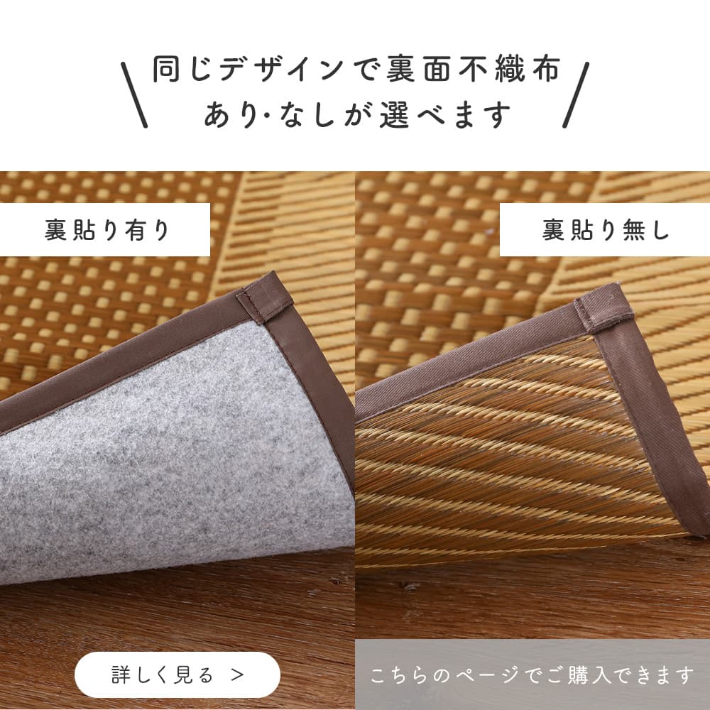不織布の裏貼りがないので、通気性抜群!畳の上敷きにもぴったりです。