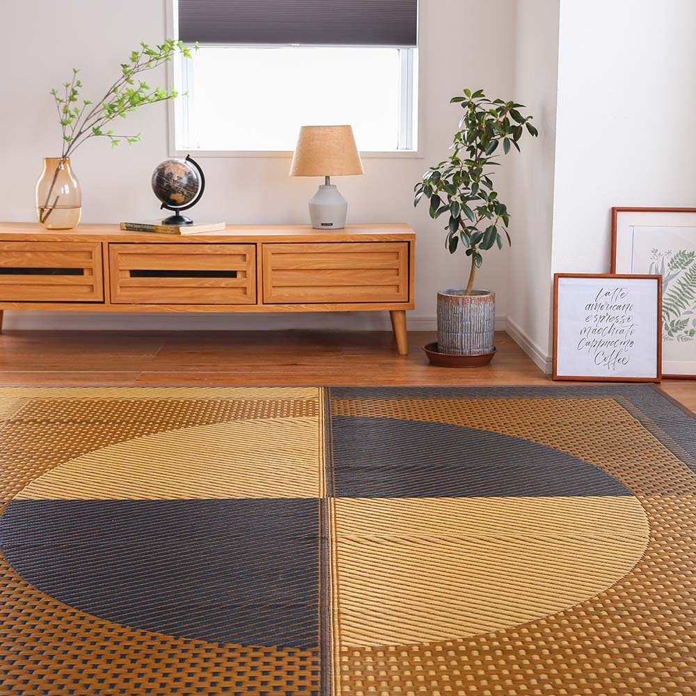 夏にぴったり!さらっと使えるい草ラグ。モダンに表現された月光が、スタイリッシュな空間に。