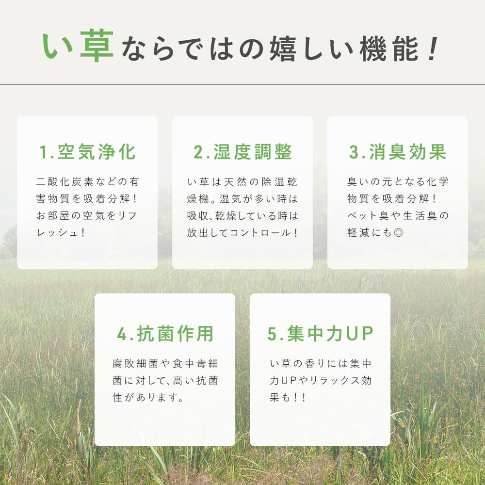 い草には空気浄化・湿度調整・消臭効果・抗菌作用・集中力UPと機能がいっぱい!
