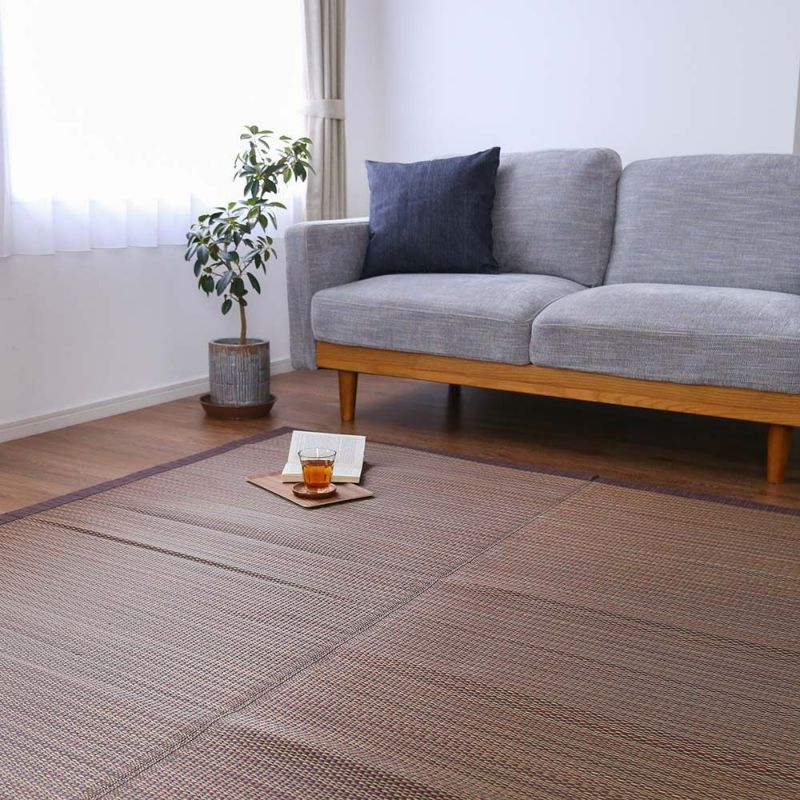 調湿効果が梅雨のじめじめ感を解消し、さらっとした肌触りが暑いお部屋の対策にも活躍するい草ラグ。