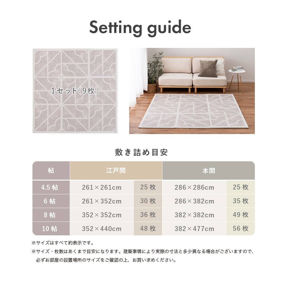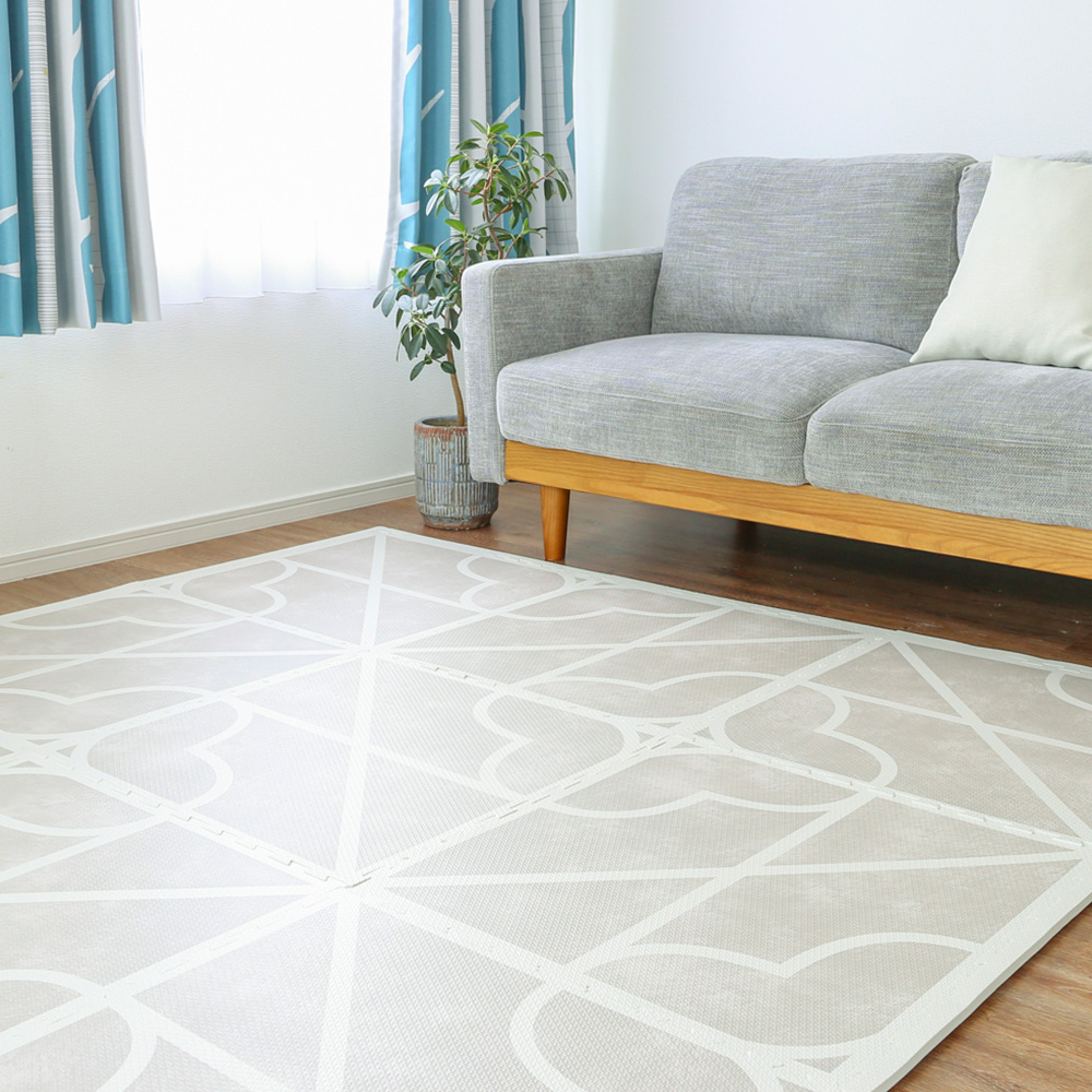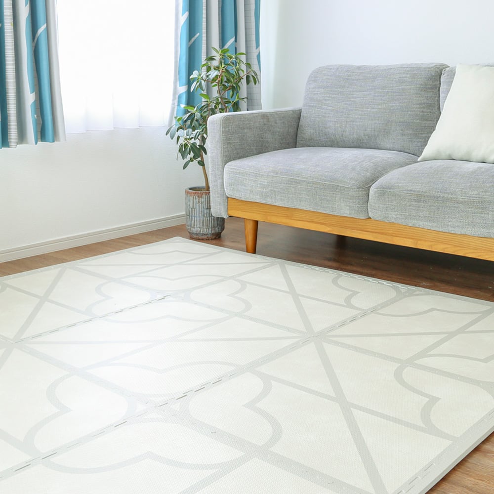 おしゃれなデザインがインテリアにもよく馴染み、洗練された海外風の空間に早がわり。こどもから大人までも楽しめるジョイントマットです。