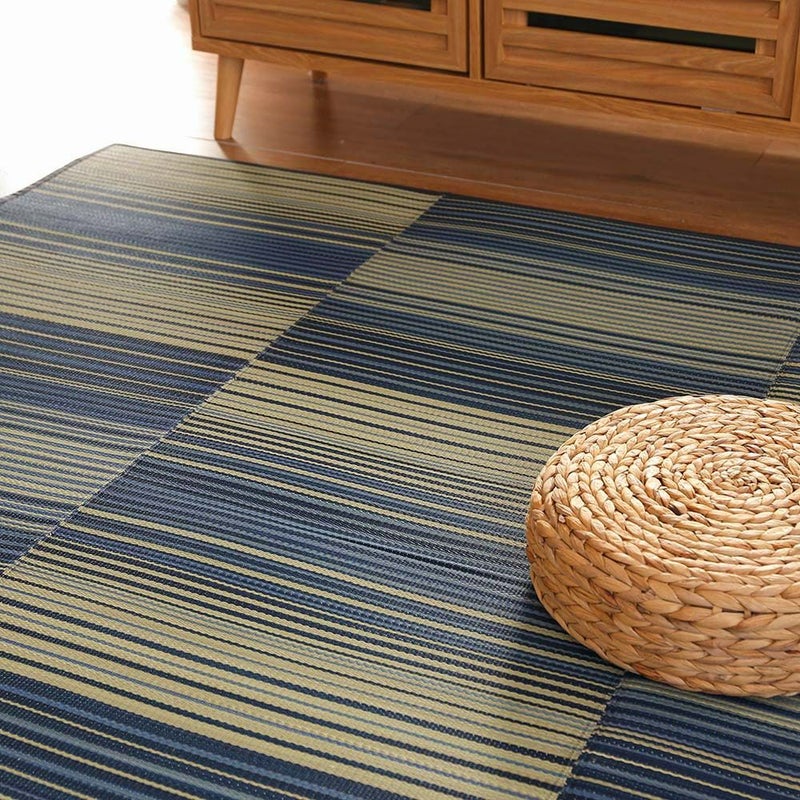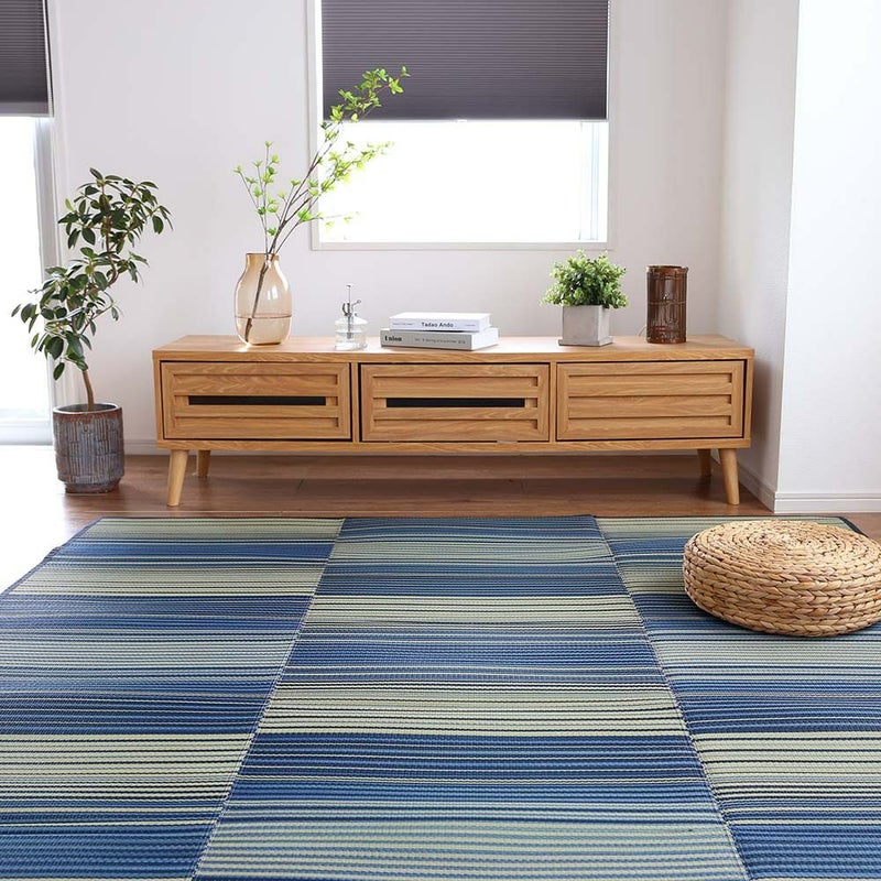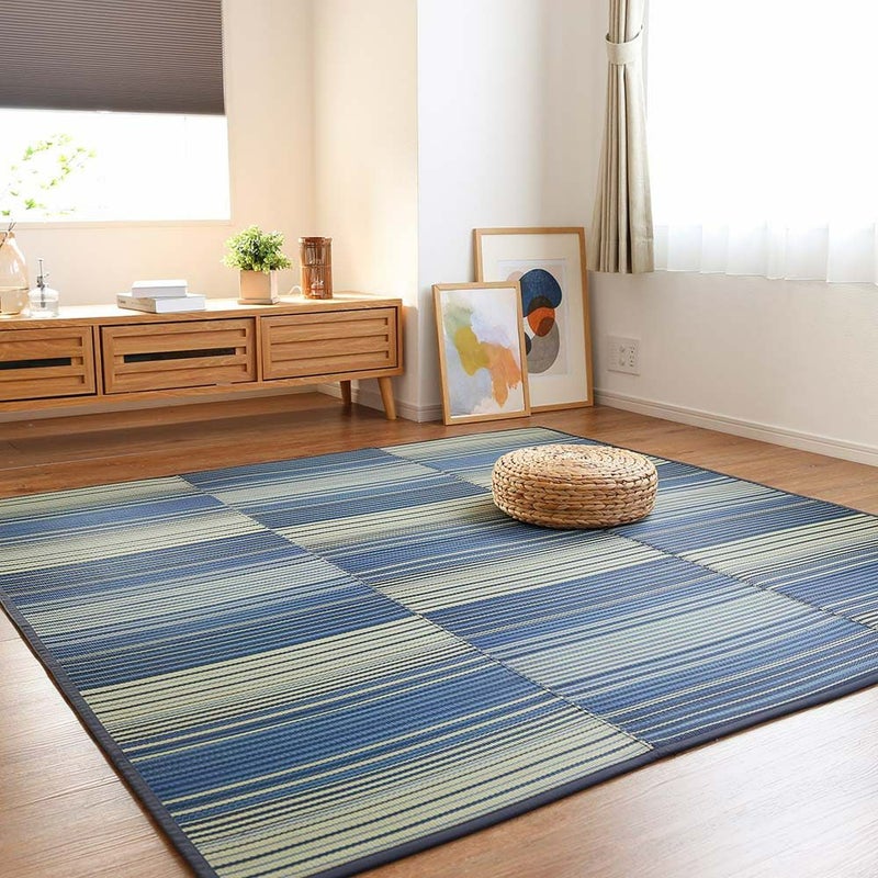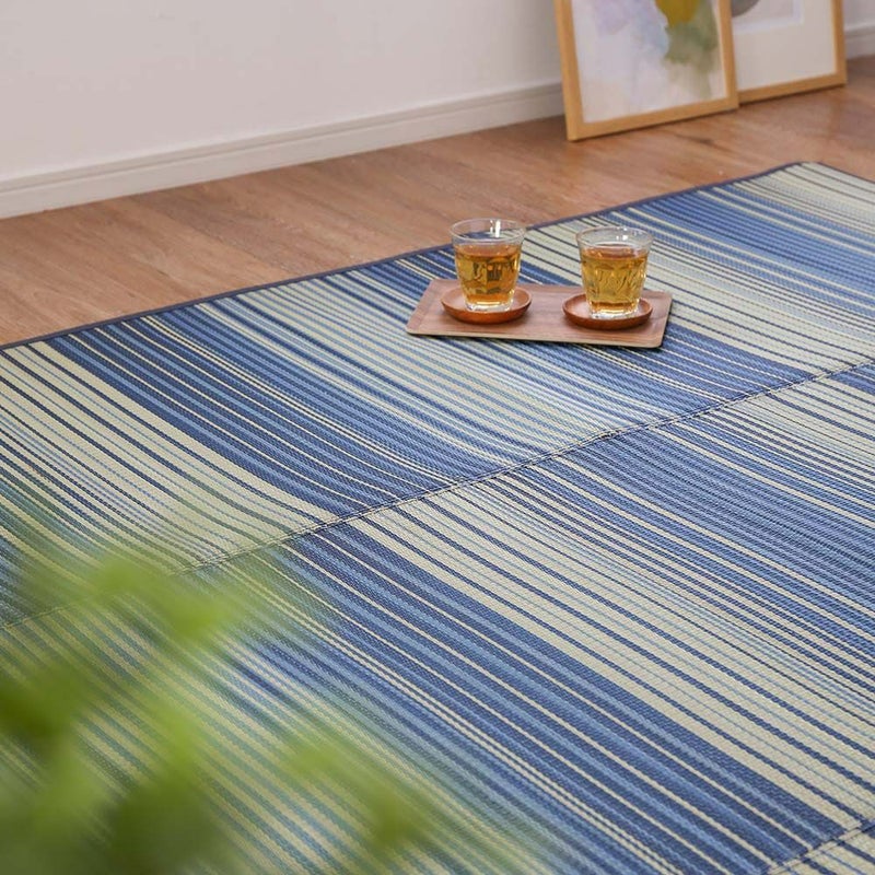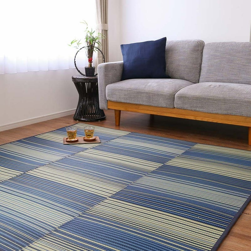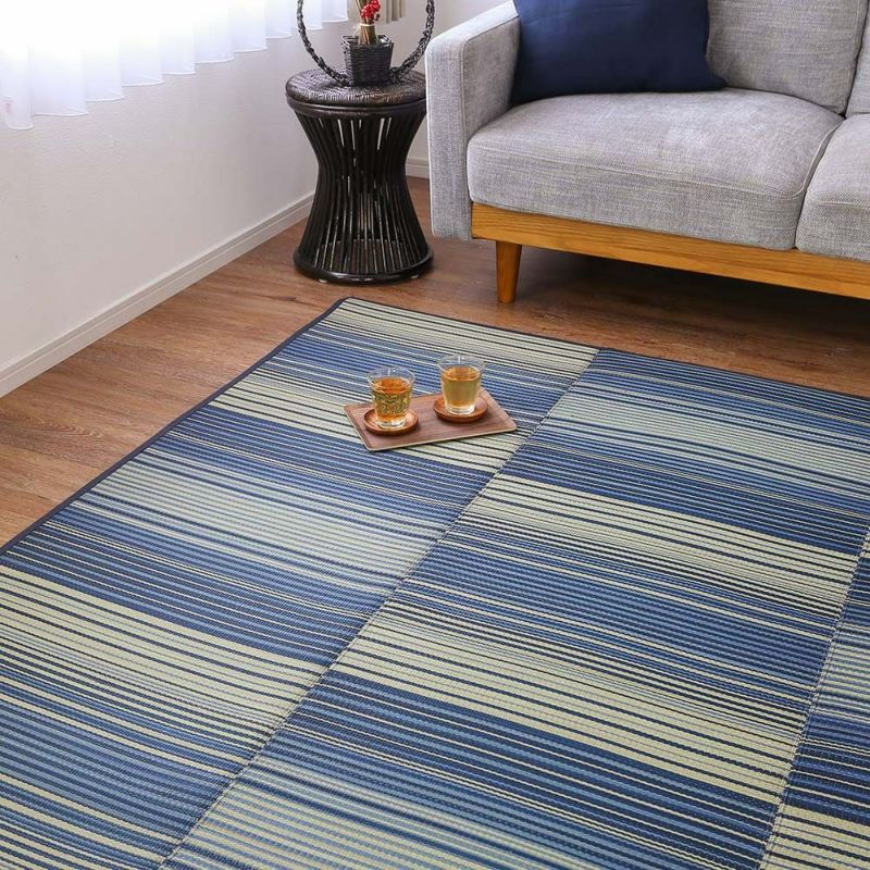 夏にぴったり!さらっと使えるい草ラグ。爽やかなブルーが、空間を涼やかに飾ります。