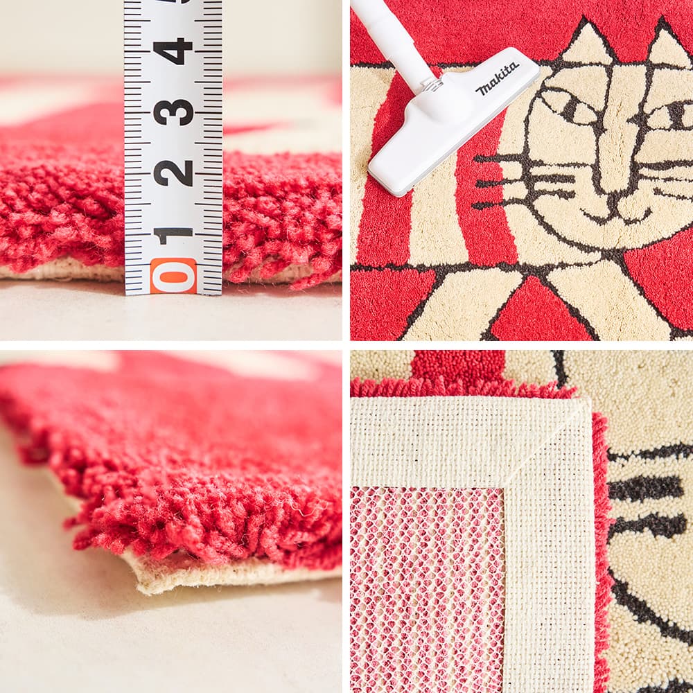 パイルの長さは床の硬さを感じさせないしっかりとした厚み。裏面は滑りにくい加工付き。ズレにくいので、お子様がいるご家庭でも安心です。