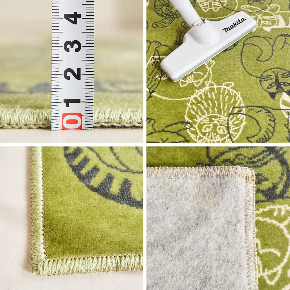 カットパイルは3mmと薄手で裏面は滑りにくい加工付き。表面は毛足が短めなので、ゴミが入り込みにくくお掃除がラクラク♪お子様がいるご家庭でも安心です。