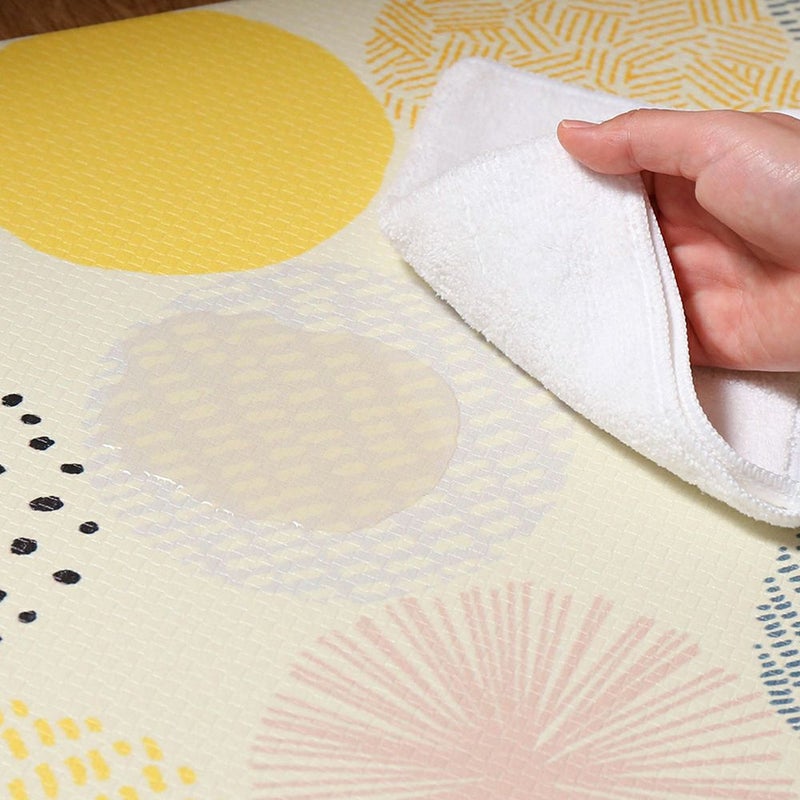 水に強い塩化ビニル素材なので、水しぶきや油汚れもサッと拭くだけでお手入れできる手軽さが魅力です。お洗濯の必要もないので時短にも。