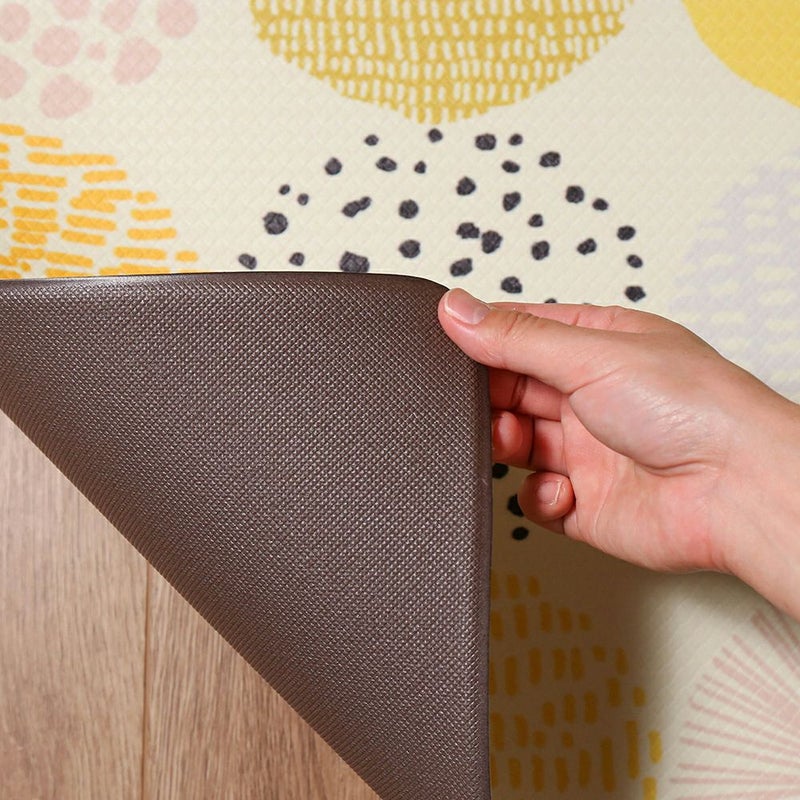 裏面には滑り止め加工が施されており、床面に密着してずれにくく安全です。行き来の多いキッチンでの移動や、掃除機がけの際も快適にお使いいただけます。