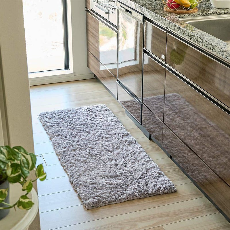 約30mmのふかふかの毛足が、優しい感触。調理中立ちっぱなしで疲れやすい足元を、そっと包み込み癒してくれます。シンプルながらも上質な質感は、どんなインテリアにも自然に溶け込み、心地よいアクセントをプラス。キッチンでの時間をより快適にしてくれます。