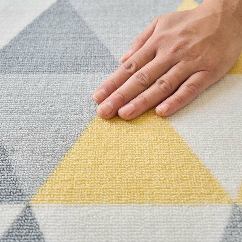 毛足が短く、汚れが毛に絡むこともないので、サッと掃除機をかけるだけで簡単に清潔を保てます。さらに、滑り止め付きで、調理中もずれにくく安心です。足元を見落としがちな調理中に嬉しい機能です。
