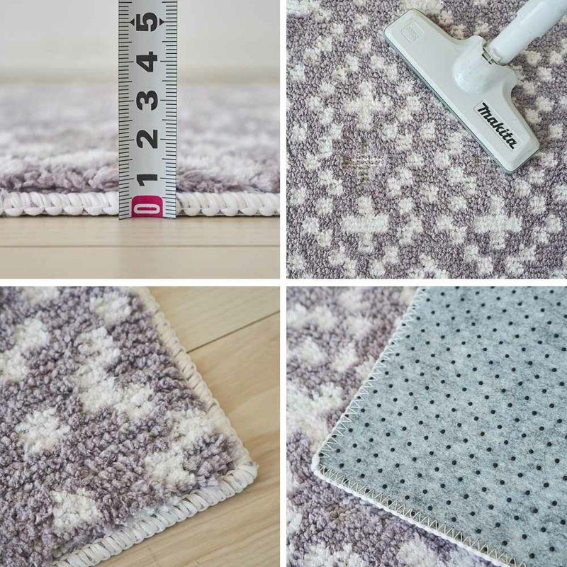 毛足が長すぎず、丁度いい長さなので、サッと掃除機をかけるだけで簡単に清潔を保てます。さらに、滑り止め付きで、調理中もずれにくく安心です。足元を見落としがちな調理中に嬉しい機能です。