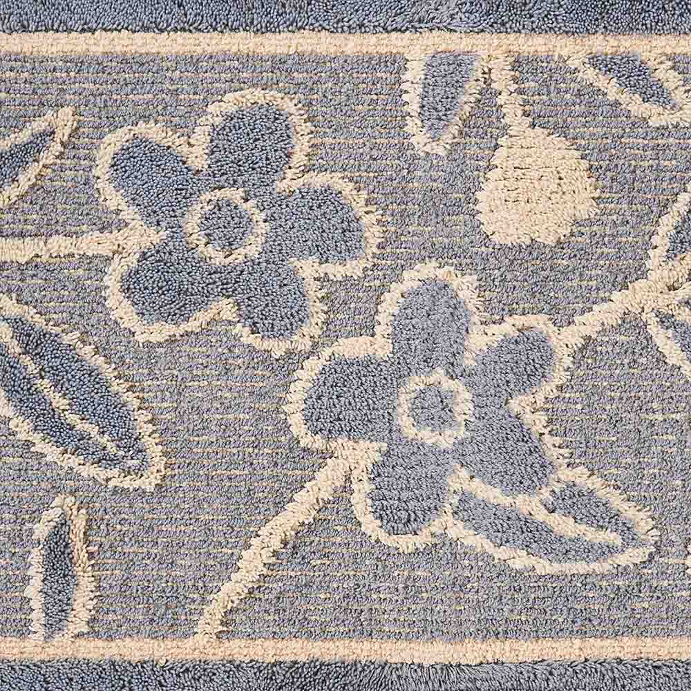 ループ状とカット状の糸で織られた立体的なデザイン。ループ状の糸には弾力性があり、荷物を乗せたキャスターで押しても毛が絡みにくく、ぺたんこになりにくいのも魅力の一つ。耐久性にも優れたマットです。