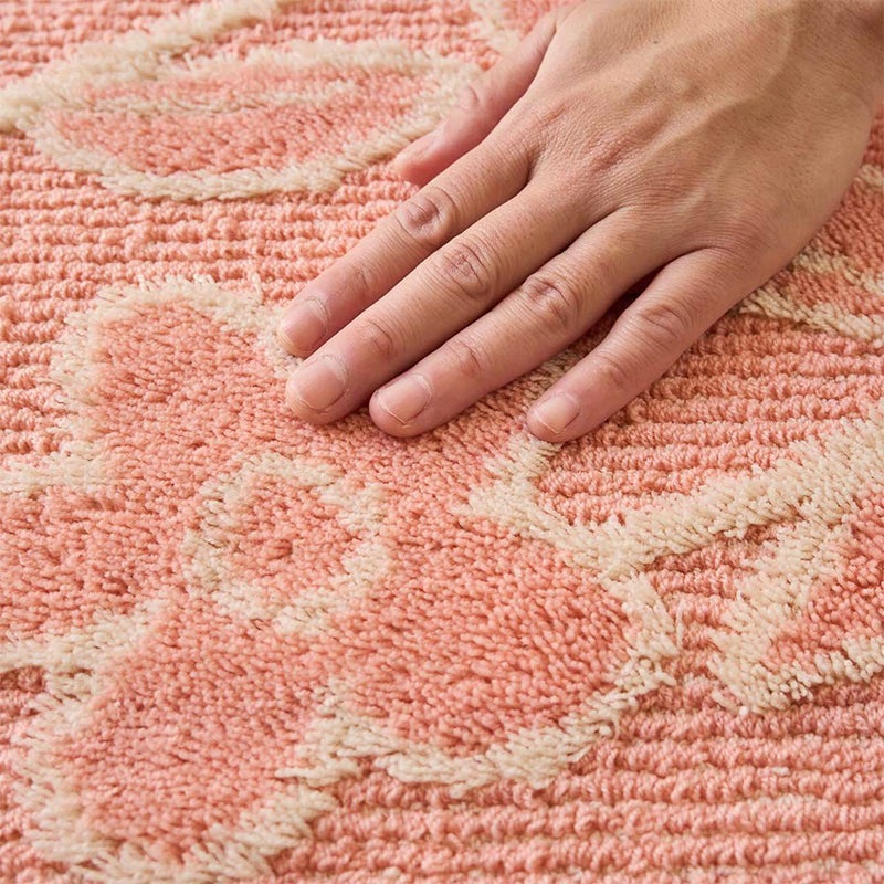 絶妙な立体感がさらっと心地いい肌触り。薄手なのにしっかりとした踏み心地なのもうれしいポイント◎キッチンの収納棚の下や冷蔵庫のドア前の狭くてマットが邪魔になりがちな場所でも、ノンストレスで開け閉めできるから、一人暮らしのワンルームにもピッタリです。