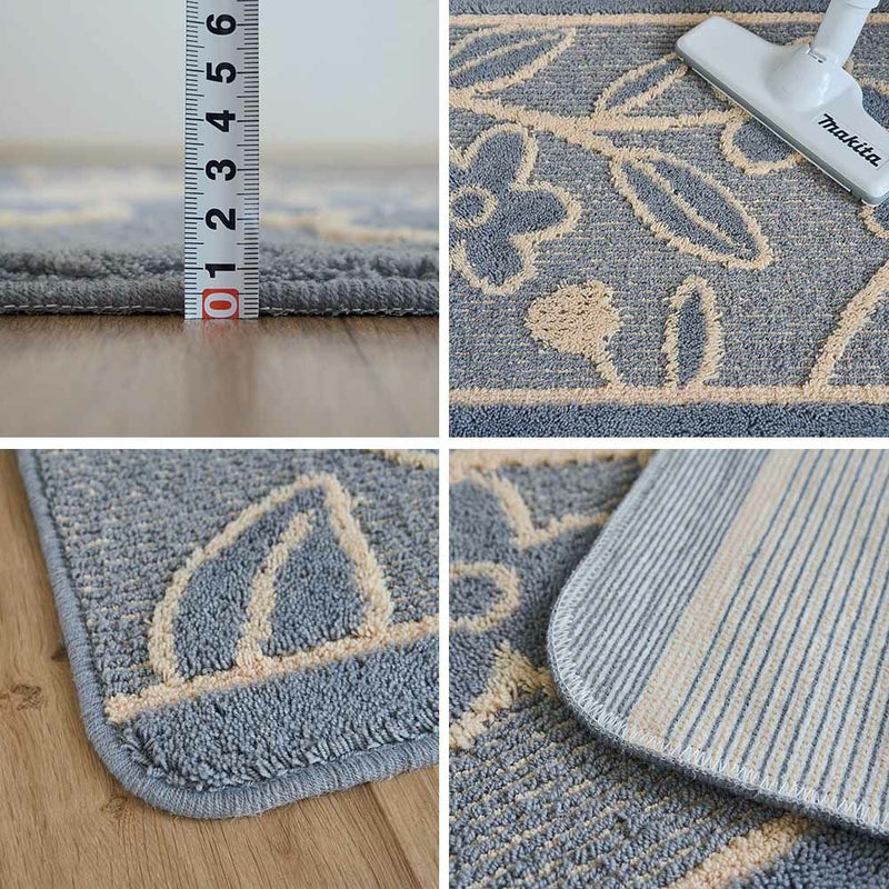 毛足が短く、汚れが毛に絡むこともないので、サッと掃除機をかけるだけで簡単に清潔を保てます。さらに、滑り止め付きで、調理中もずれにくく安心です。足元を見落としがちな調理中に嬉しい機能です。