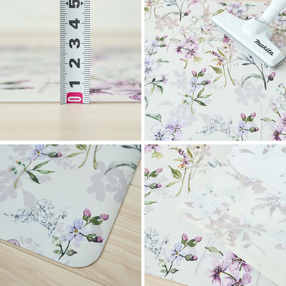 足元に広がる、優雅な花々の彩りと、清潔で快適な使い心地。洗練されたデザインで気分を高めながら、汚れてもサッと拭けて、いつでも清潔をキープ。キッチンマットと毎日が少し優雅に、美しいキッチンにしてみませんか?