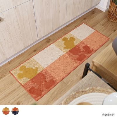 ミッキーマウスのシルエットがデザインされたキッチンマット。配色のブロックデザインに浮かび上がるミッキーがとってもかわいい仕上がりに〇