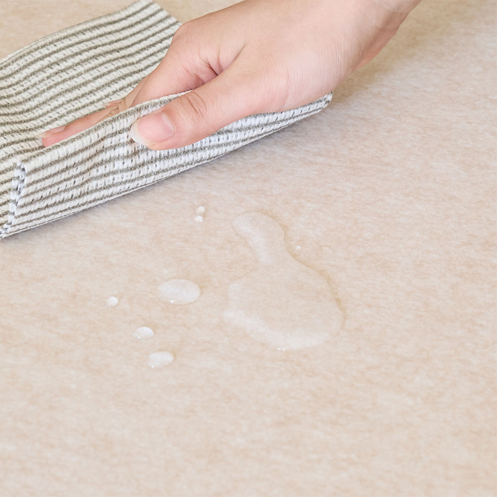 はっ水性の高いポリエステルのコーティングで、調理でうっかり汚してもサッと拭くだけ!忙しいあなたも、いつでもキッチンを清潔に保てる、頼れるマットです。