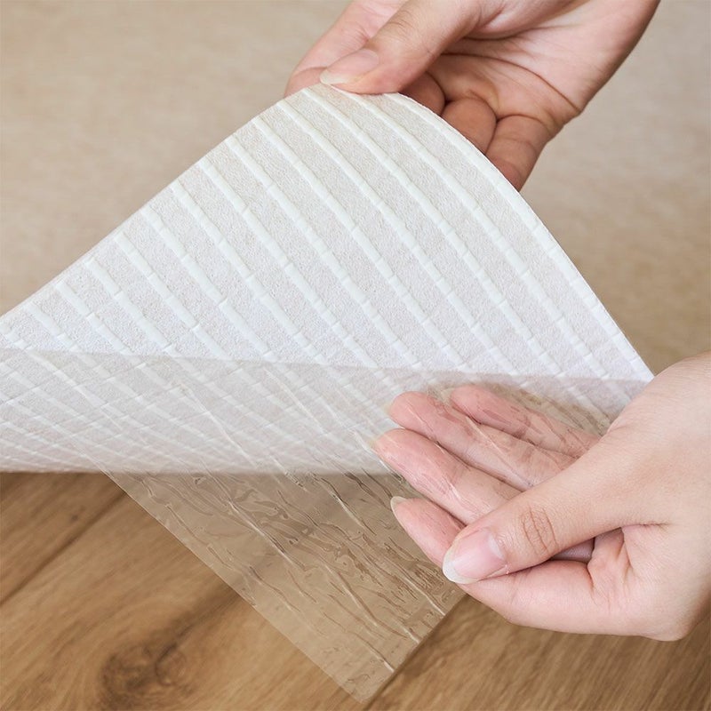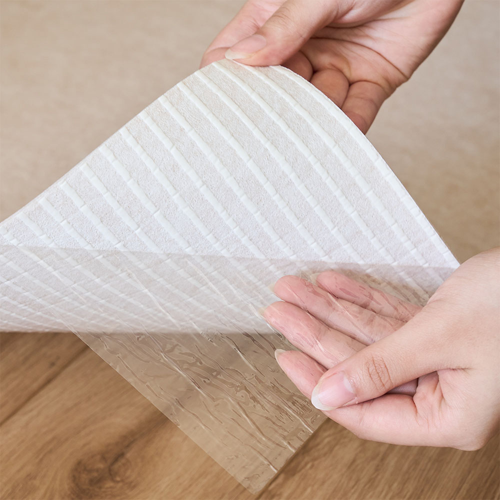 薄手のマットって、軽くて動いてしまいそう…そんな心配も必要ありません。裏面に吸着性の高い滑り止め加工を施しているため、床にピタッと吸い付くように密着!一度敷いたらずれにくく、調理中に足で引っかけてしまうような心配もなく、快適にお使いいただけます◎