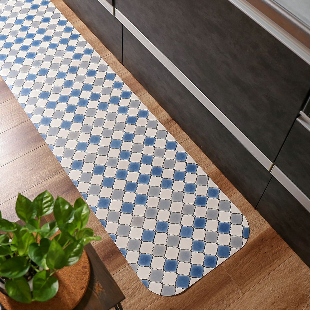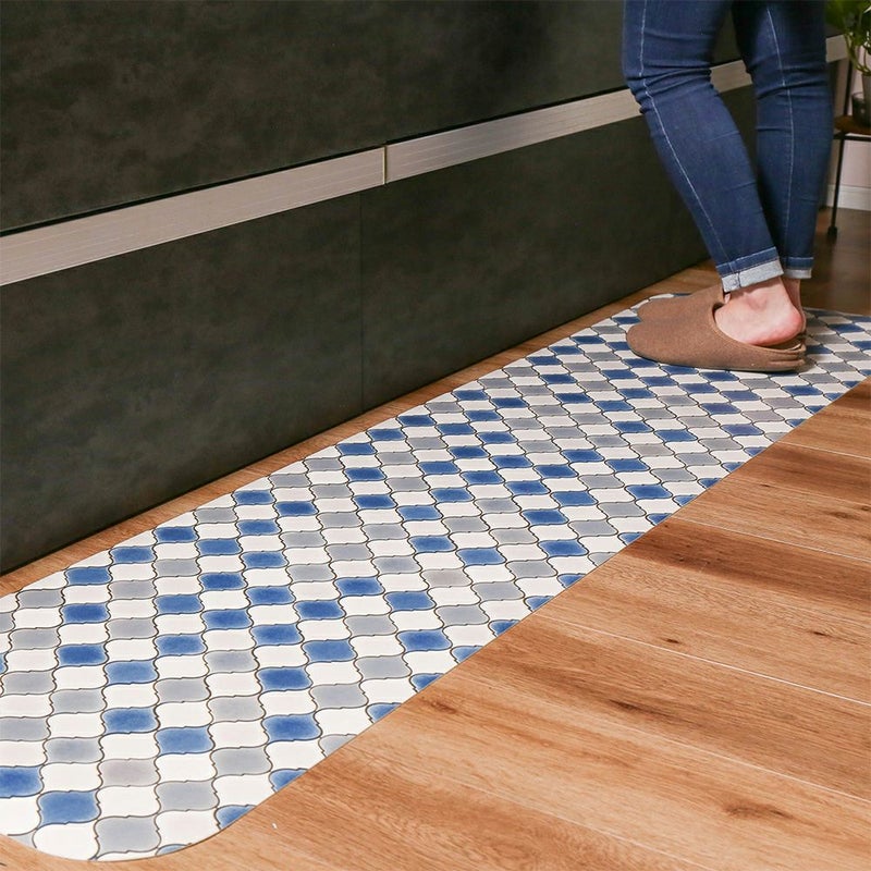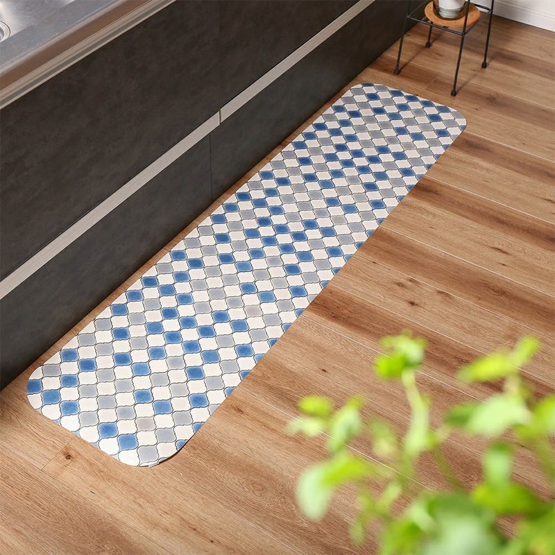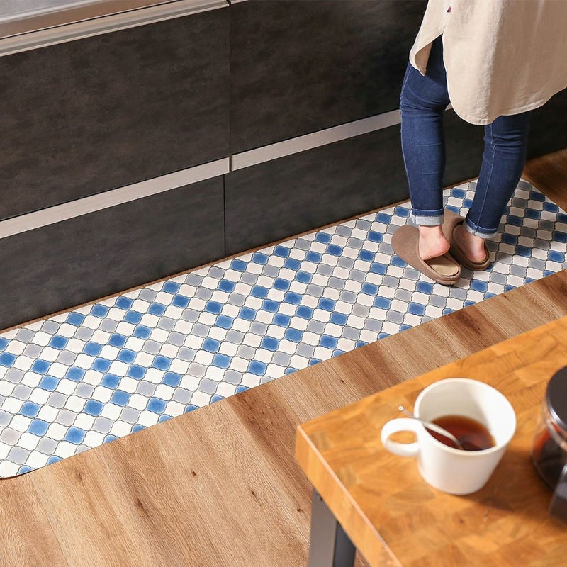 撥水・防汚・抗菌と高機能な、塩ビプリントキッチンマット。 おしゃれなデザインと毎日の暮らしにうれしい機能性を兼ね備えた人気の一品。