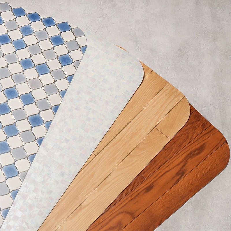 カラー:左からレトロタイルブルー、モザイクタイル、ウッド、ダークウッド