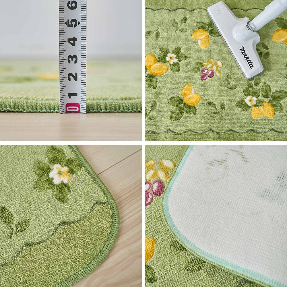 毛足が短く、汚れが毛に絡むこともないので、サッと掃除機をかけるだけで簡単に清潔を保てます。さらに、滑り止め付きで、調理中もずれにくく安心です。足元を見落としがちな調理中に嬉しい機能です。