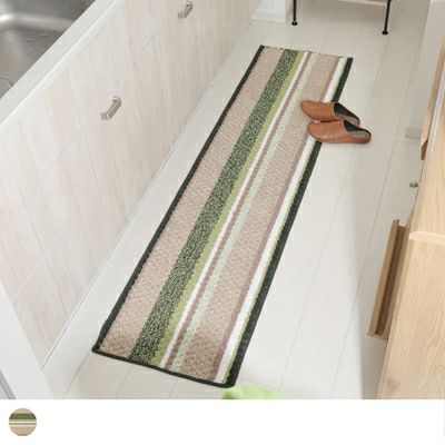 ナチュラルで柔らかな雰囲気漂う多色使いのボーダー柄。モコモコとした立体感のあるリップル織りで踏み心地も快適なキッチンマットです。