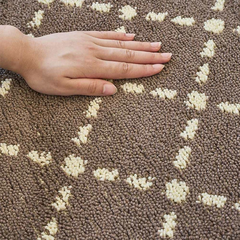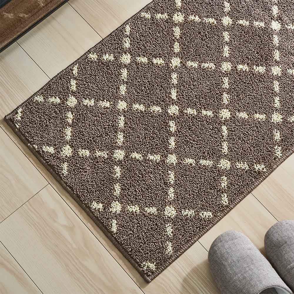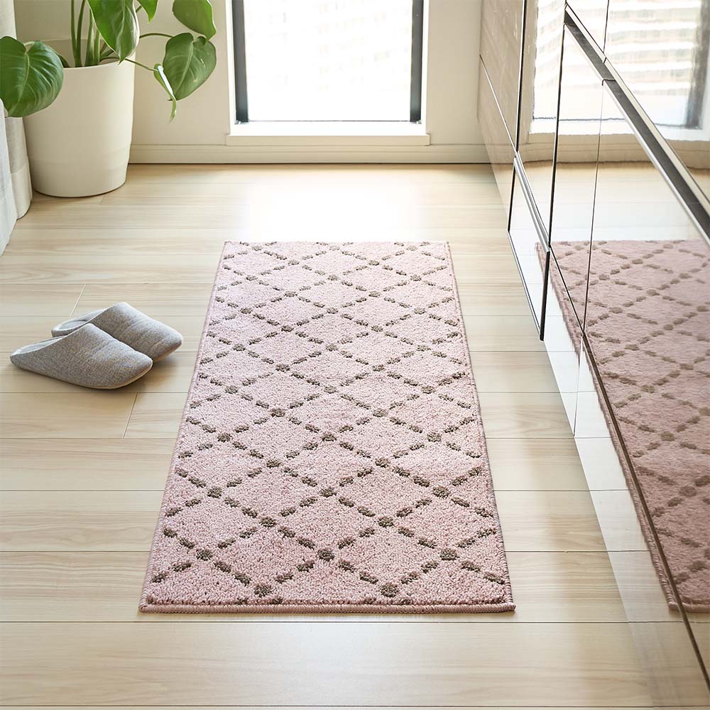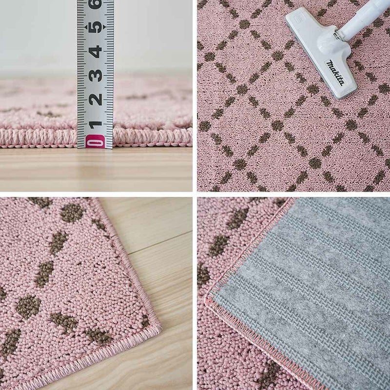 毛足が短く、汚れが毛に絡むこともないので、サッと掃除機をかけるだけで簡単に清潔を保てます。さらに、滑り止め付きで、調理中もずれにくく安心です。足元を見落としがちな調理中に嬉しい機能です。