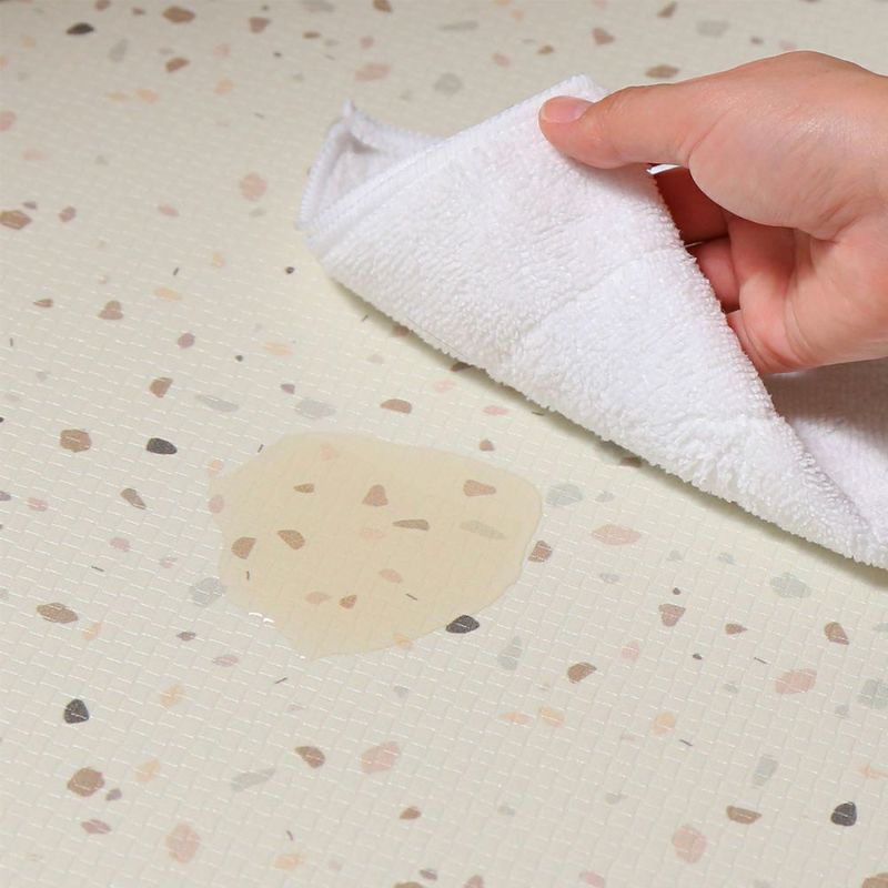 水に強い塩化ビニル素材なので、水しぶきや油汚れもサッと拭くだけでお手入れできる手軽さが魅力です。お洗濯の必要もないので時短にも。