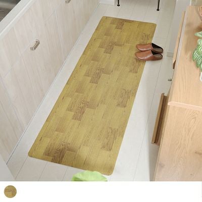 水や油汚れもさっと拭き取れる、ソフトでクッション性に優れた素材感。木目調のデザインでキッチンもたちまちおしゃれに早変わりします。