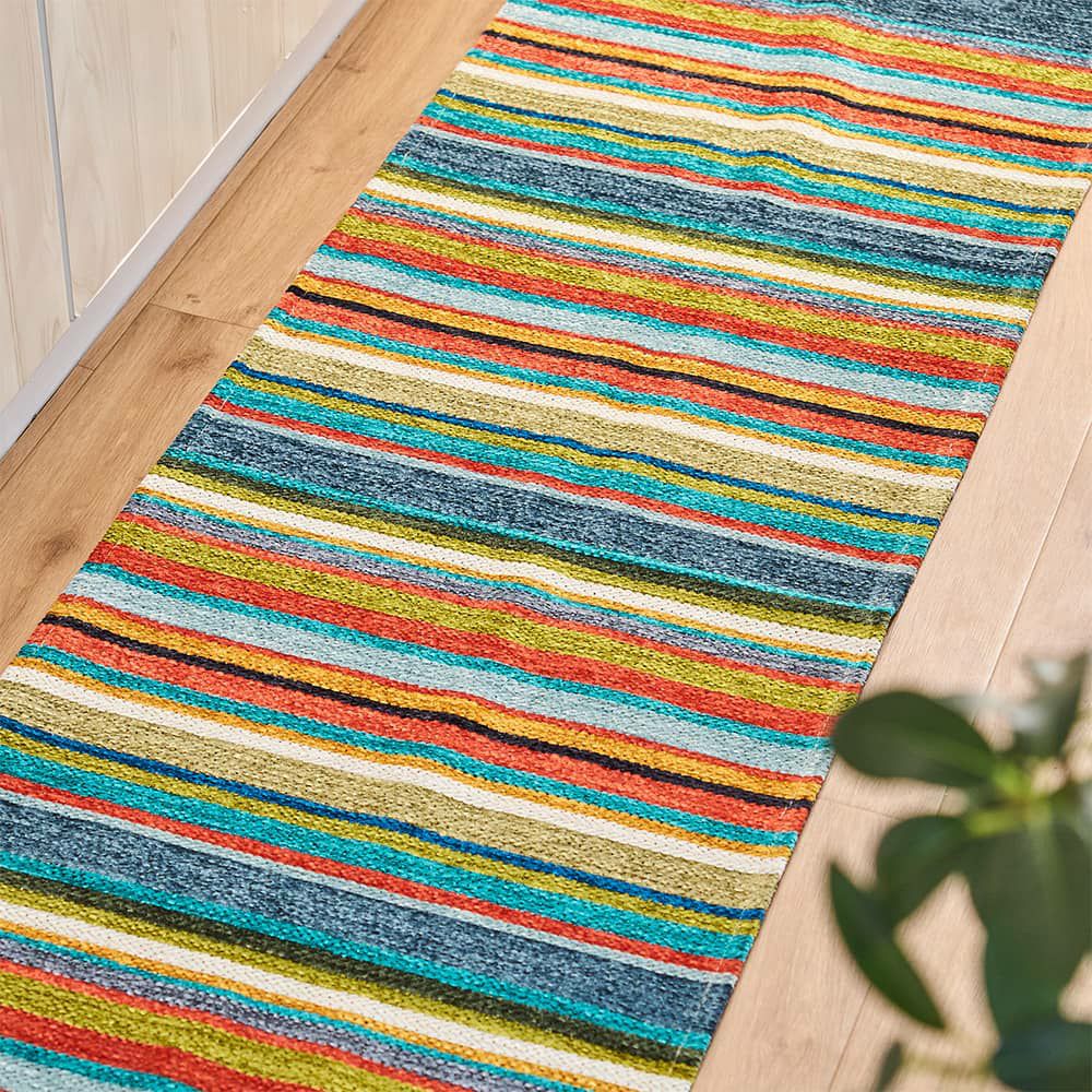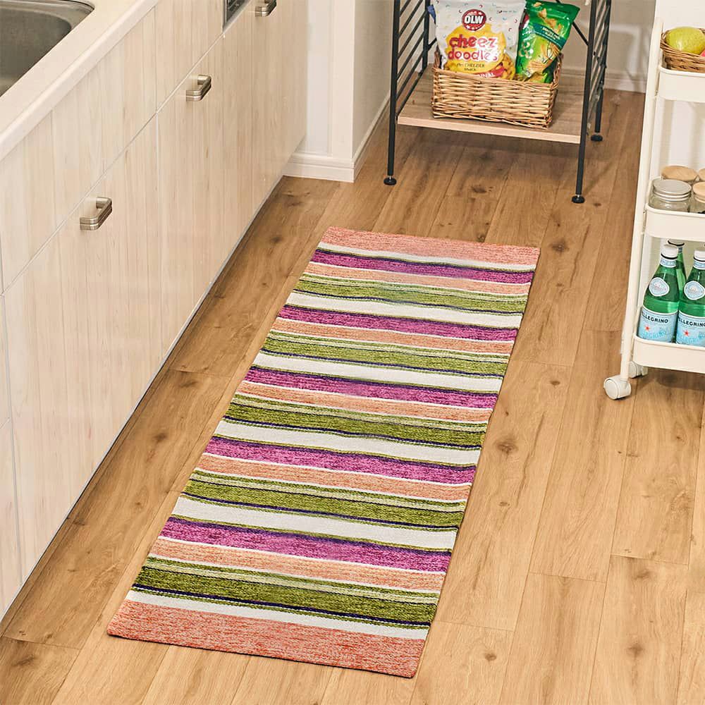 エジプトの市場に並んだ色とりどりの工芸品や民族衣装。その風景をスケッチしたような、カラフルな色合いのキッチンマットです。立体感のあるジャガード織りと異国情緒漂うデザインが、キッチンを華やかに彩ります。