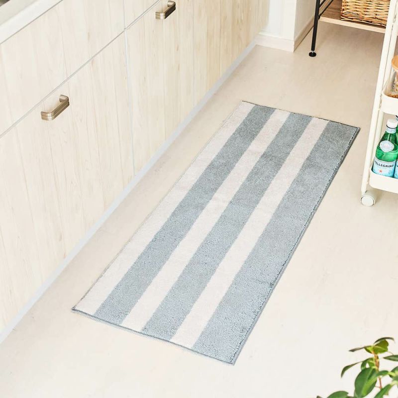 インテリアのアクセントになる大胆なストライプ柄のキッチンマット。シンプルながらも存在感のあるデザインで、スタイリッシュで抜け感のあるおしゃれな空間を演出してくれます。