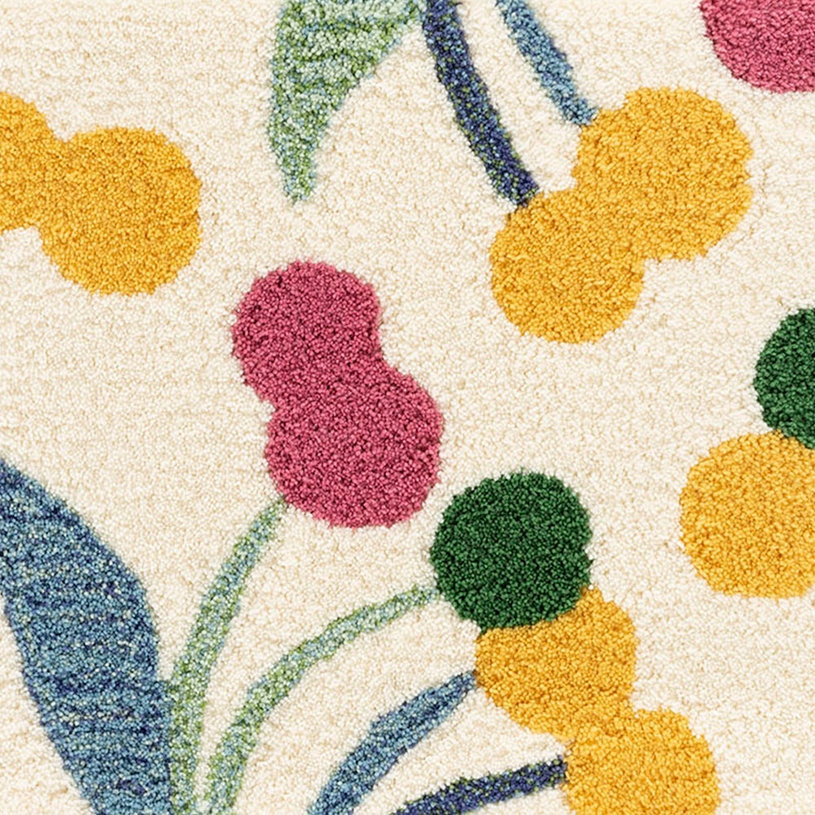 ドットの花が連なることで大きな円を描き、伸び伸びとした北欧テイストのデザインマットです。